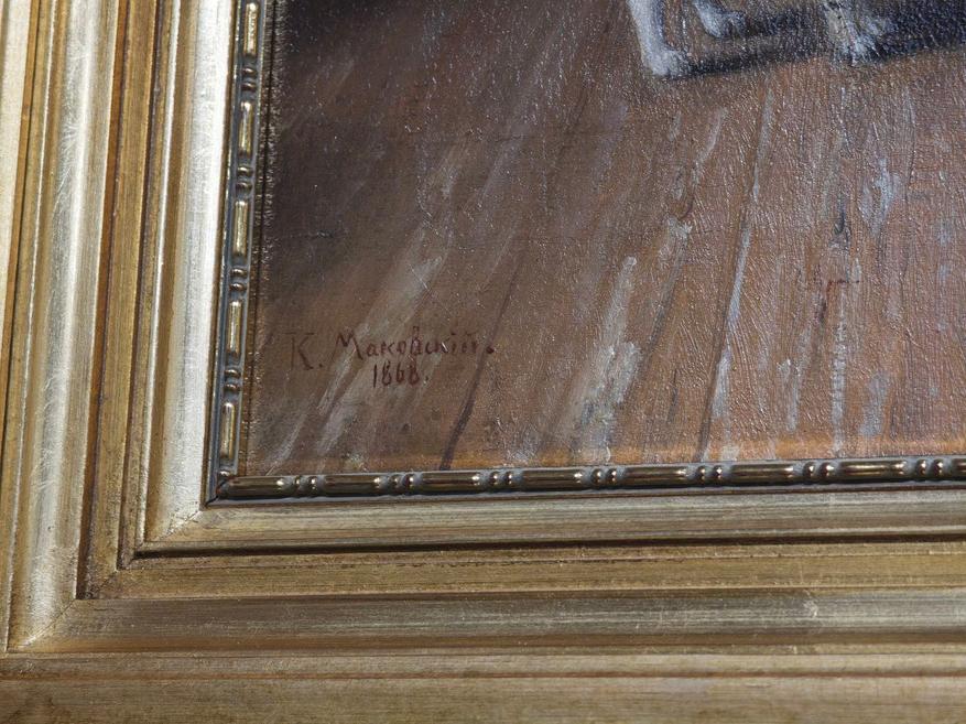 А интересна она тем, что это Константин Маковский, а не Владимир Маковский, как можно было бы сразу предположить по сюжету. Казалось бы, бытовая сценка, немного карикатурная, с десятком мельчайших подробностей-подсказок…