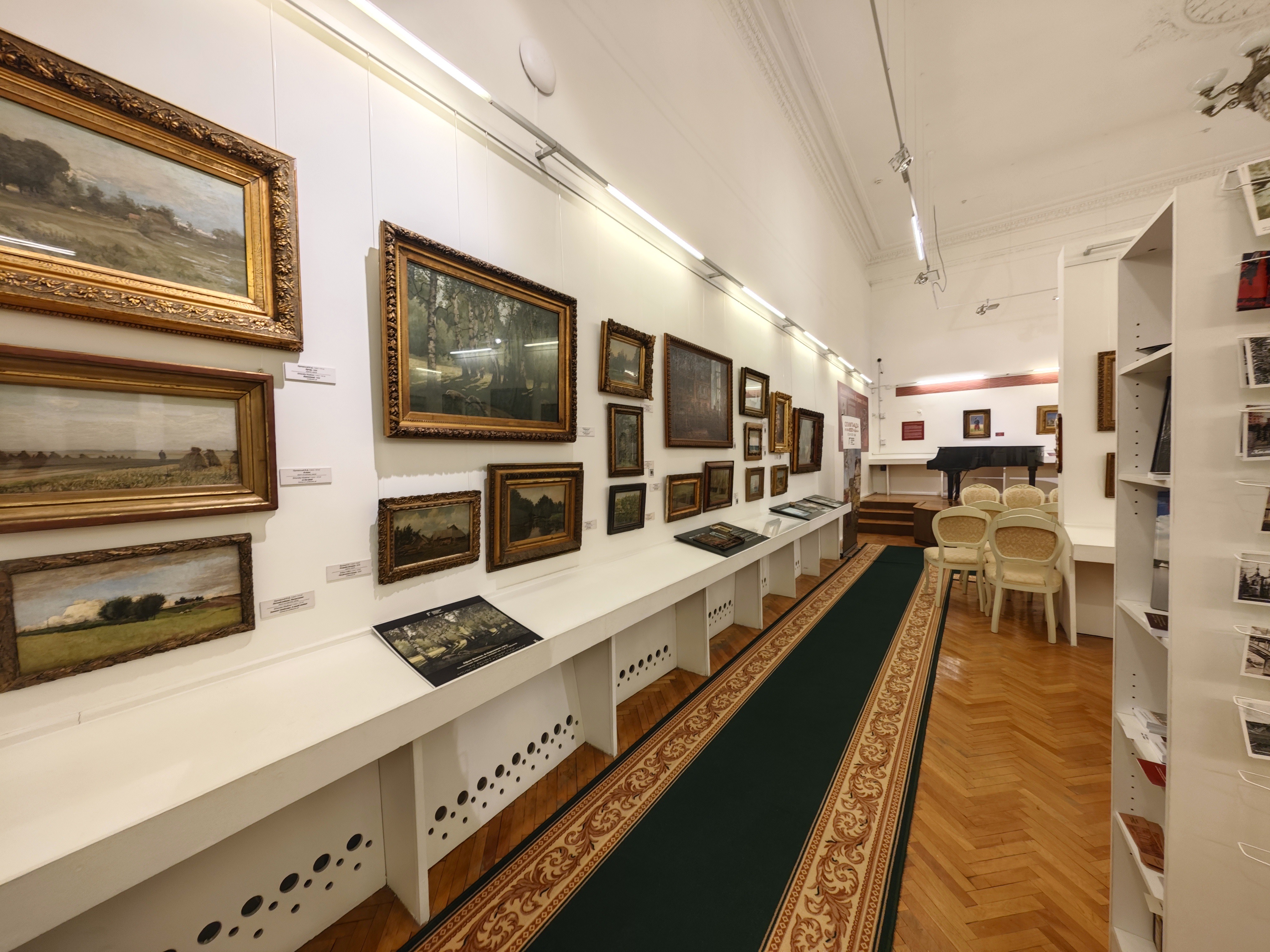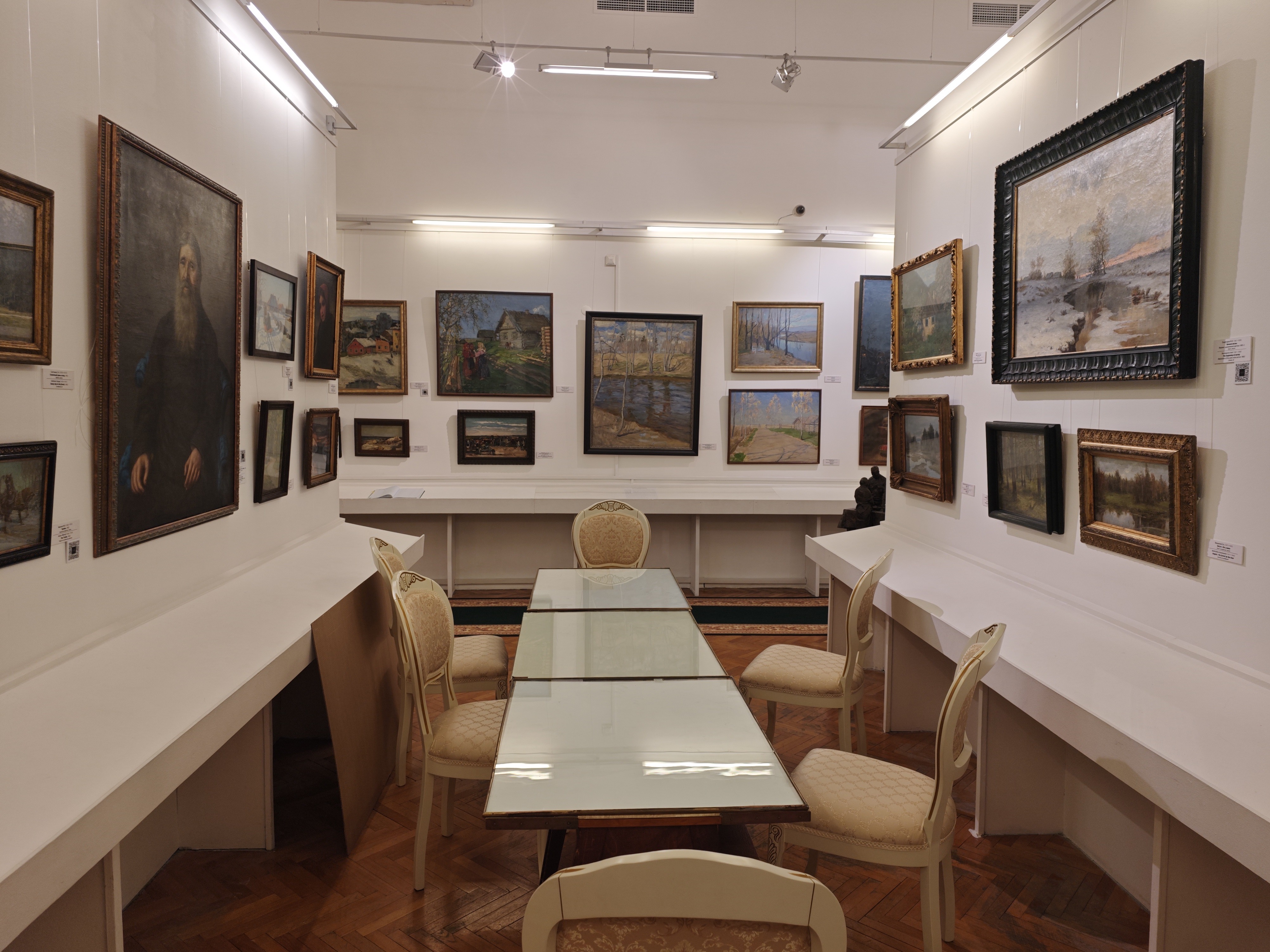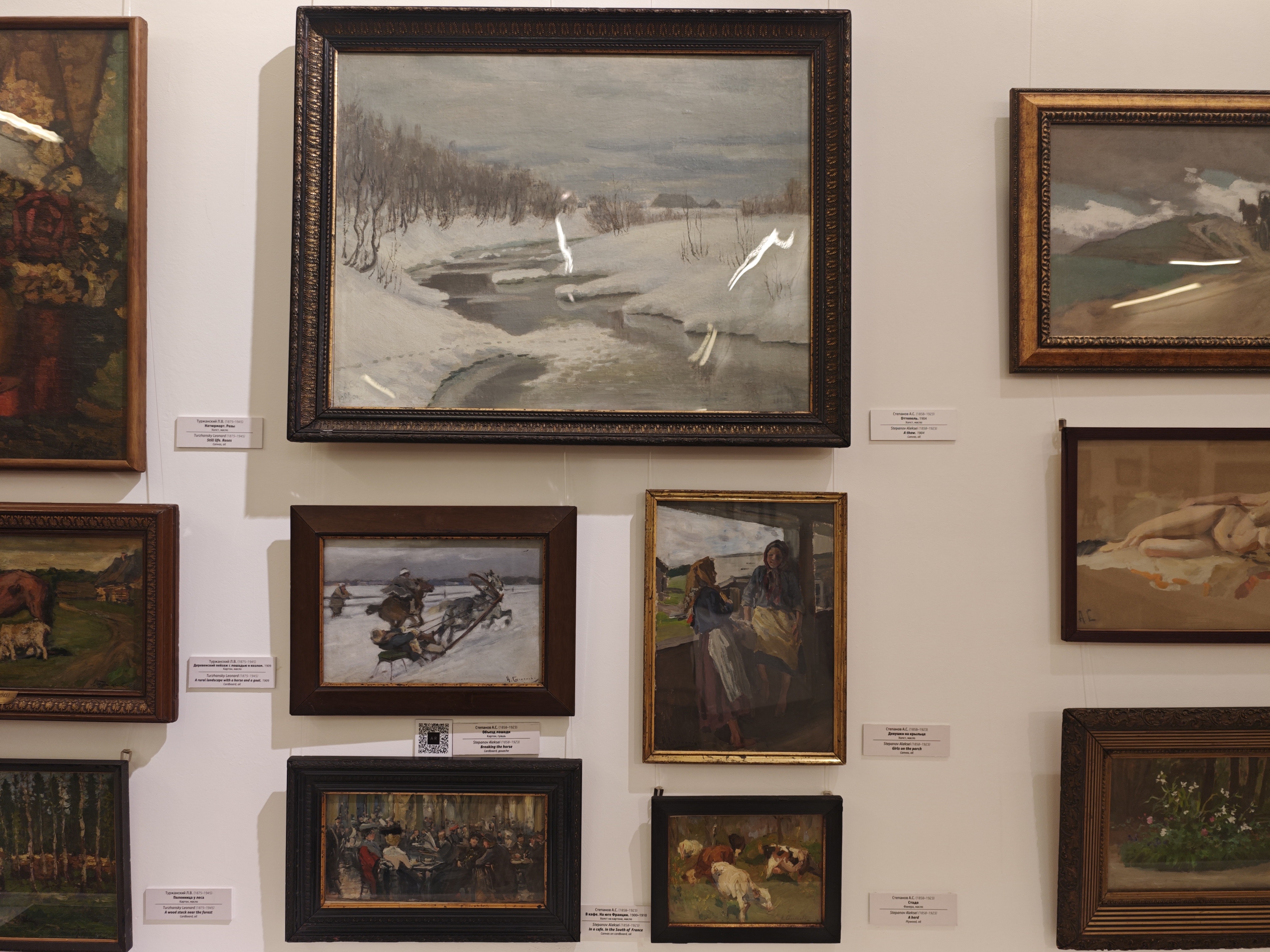 Наверное, более искушенный зритель будет вправе заметить, что как будто «чего-то не хватает». Конечно, это не энциклопедическое собрание! Но некоторые фамилии (скажем, Саврасов) тут отсутствуют временно, так как предоставлены другим музеям.
