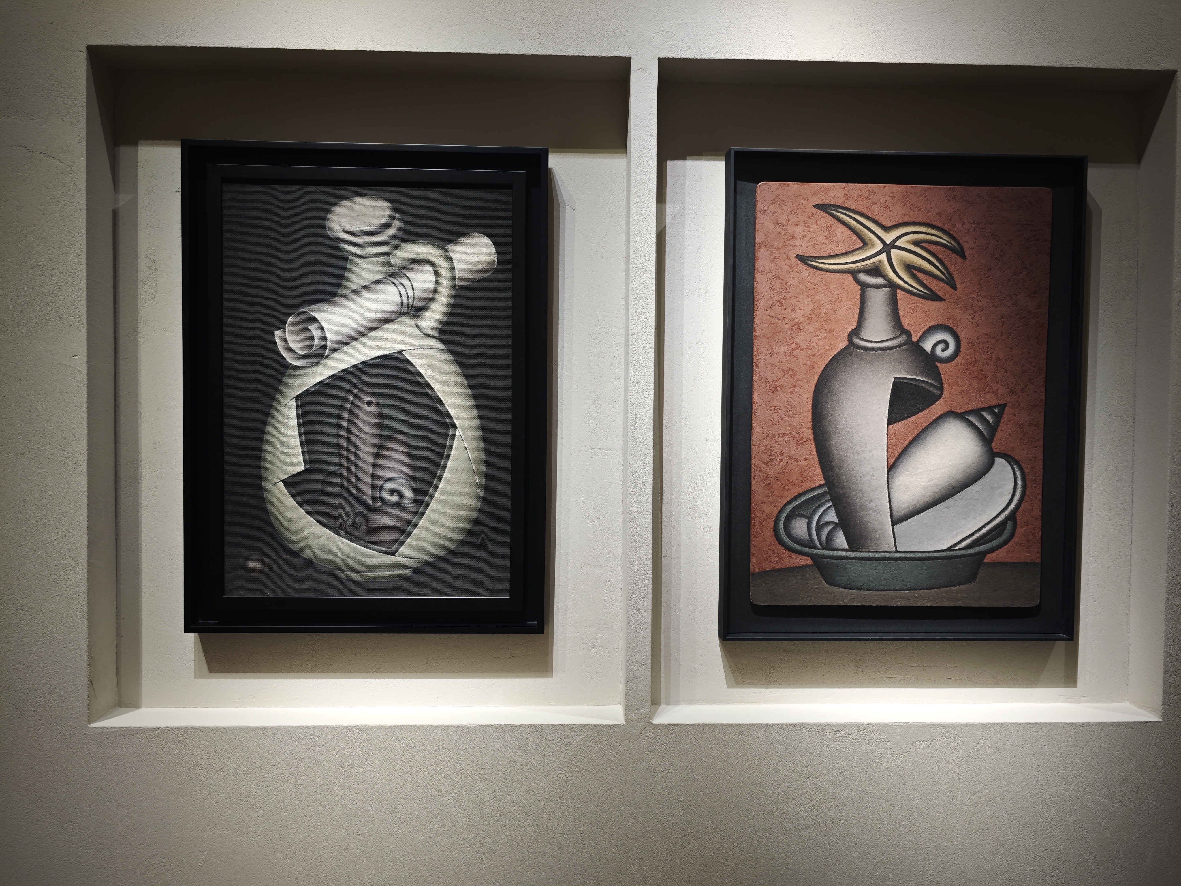 Основная коллекция — это узнаваемые «суровые» натюрморты Краснопевцева, которые, конечно, ни что иное, как размышления о жизни и смерти. Корни их следует искать в жанре Vanitas, по всей видимости, ну или во всяком случае, глядя на жемчуг, ракушки, расколотую посуду, это можно предположить.