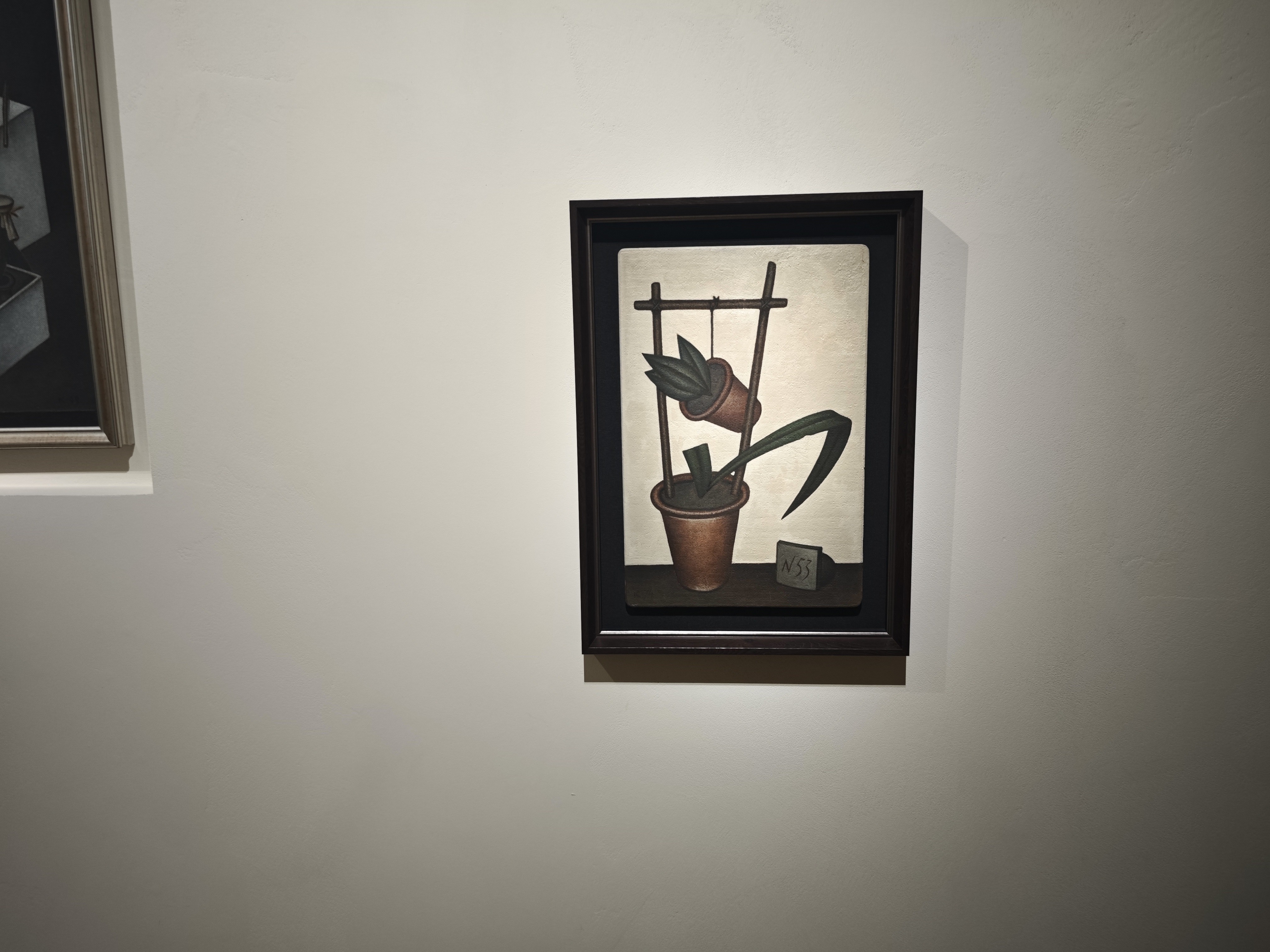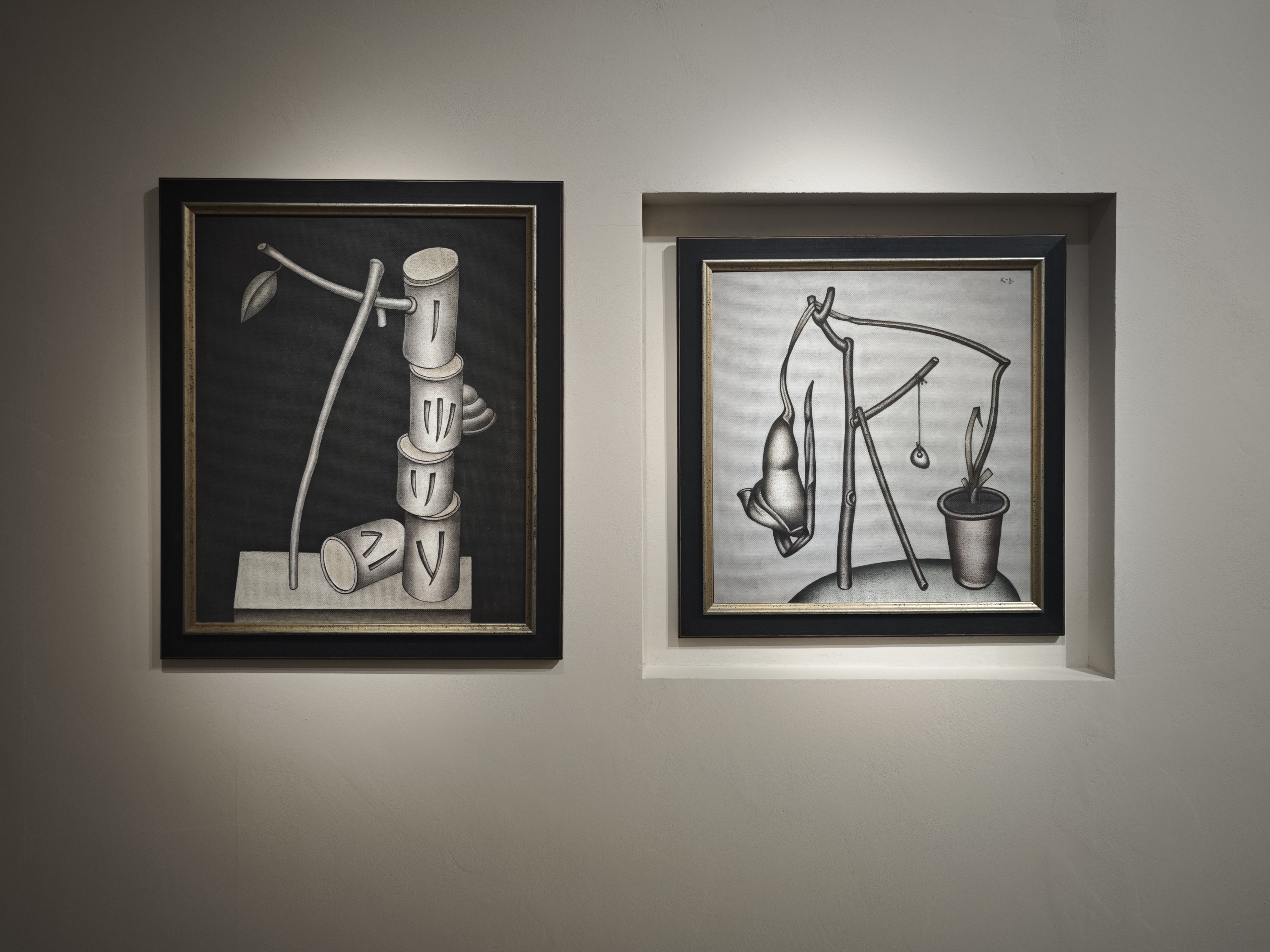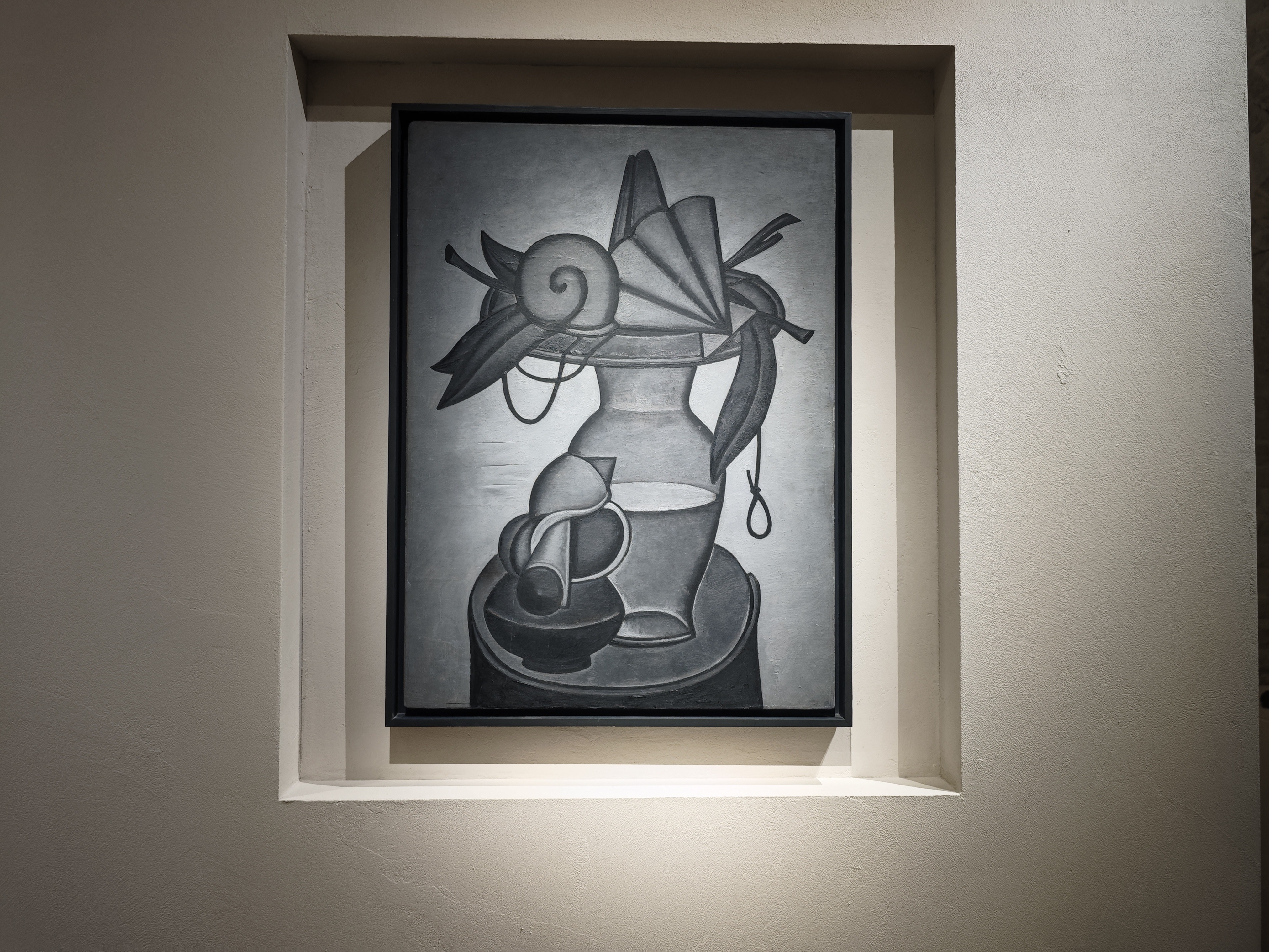 По мнению художника, в мире есть очень хрупкие красоты, которым необходимо придать жесткую форму. И это ровно то, что он и делает: перед нами жесткий, твердый рисунок, где мы видим хрупкие амфоры, листы бумаги, возможно, с поэзией или нотами, фрагменты раковин, листья растений. А это не просто недолговечные вещи, а еще и культурные символы недолговечности, хрупкости и бренности бытия.