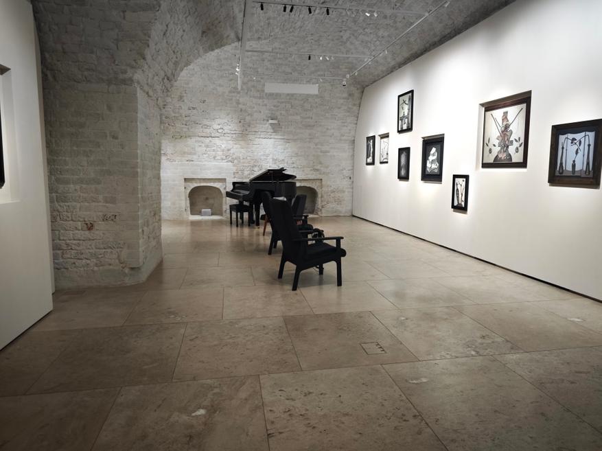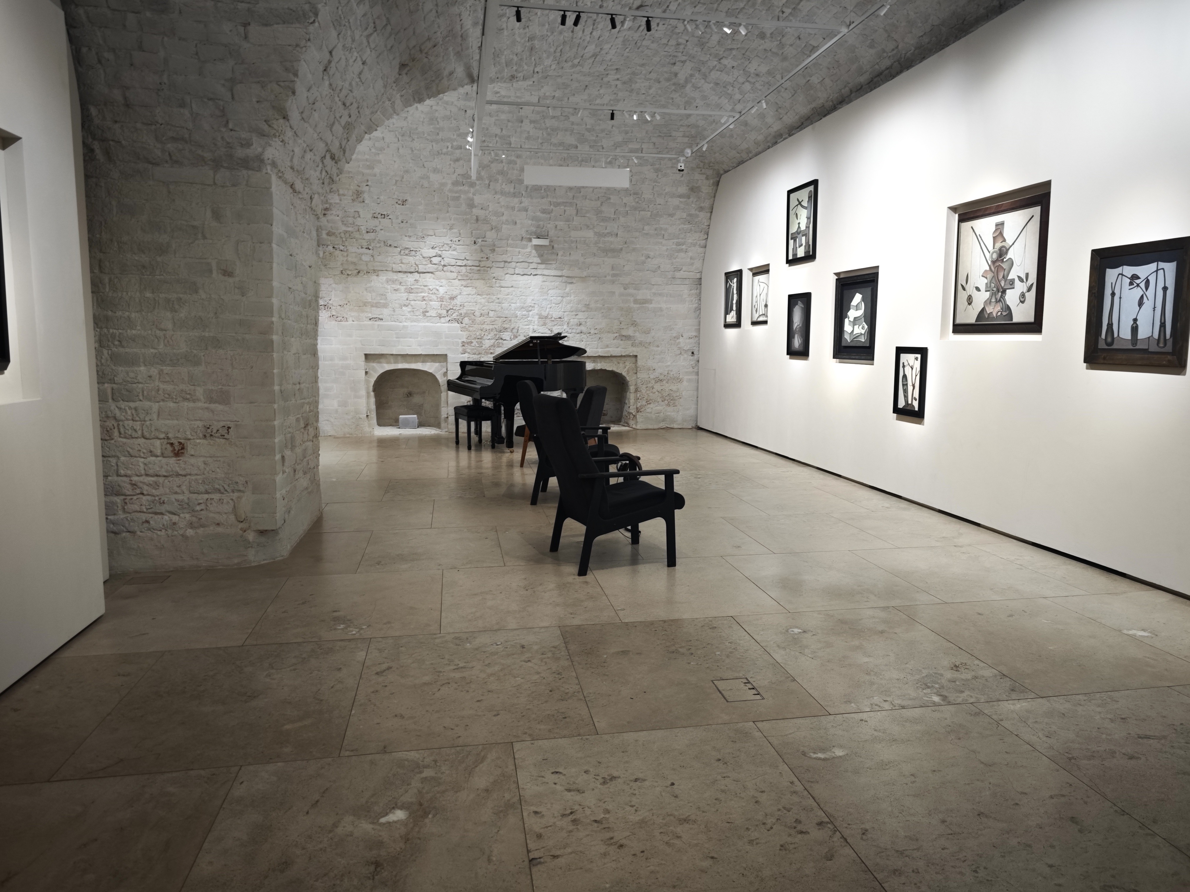 Оформлены они довольно «ритмично», видимо, следуя за названием, и даже размещение картин получается «уравновешенным»: то в нише, то на стене.