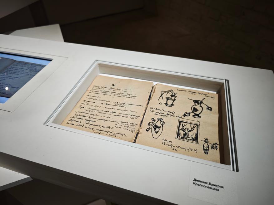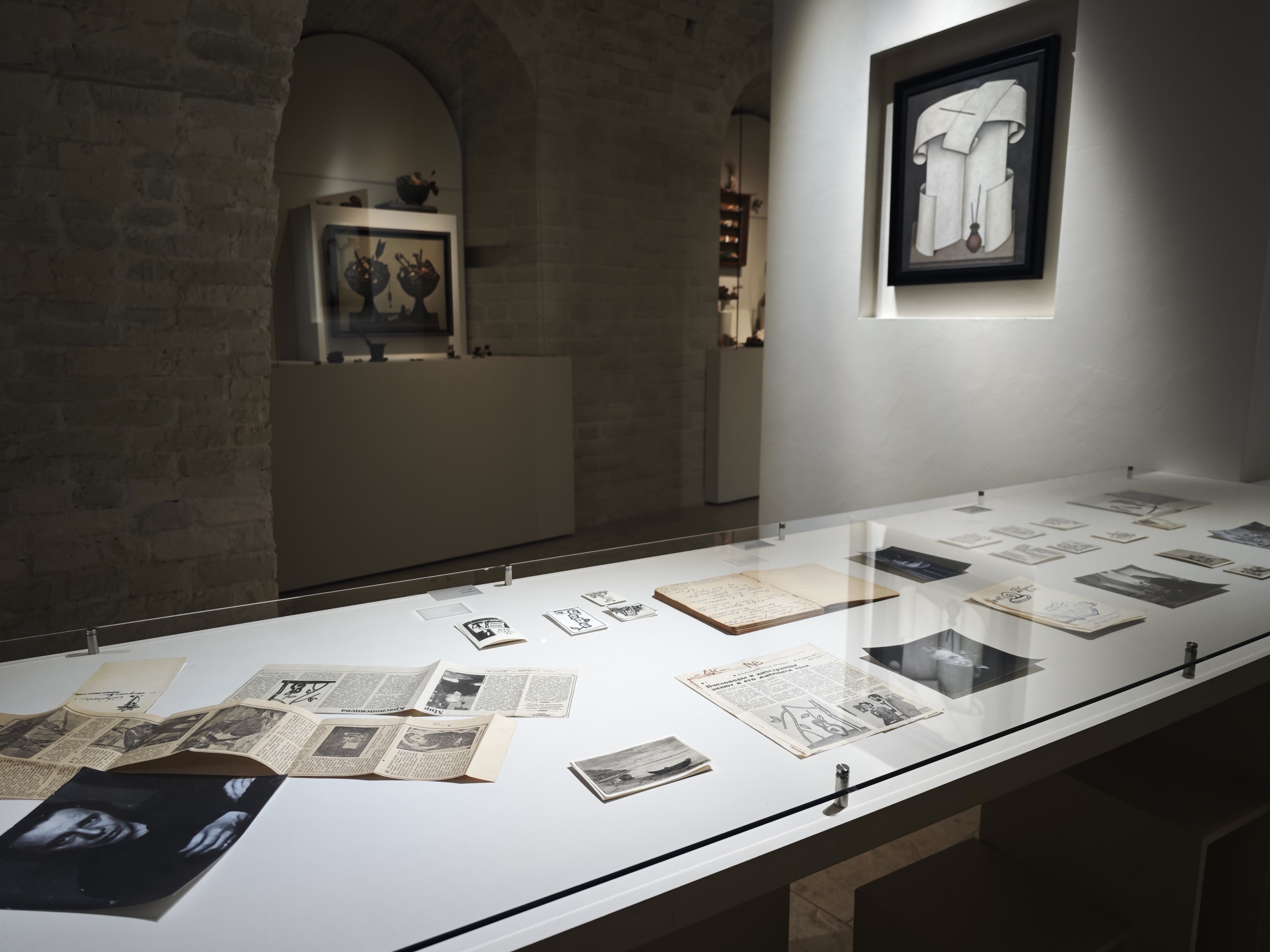 В пространстве представлено несколько десятков работ из собрания центра, а также из частных коллекций, включая документальные материалы (дневники, фото, письма, заметки о художнике из газет и журналов).