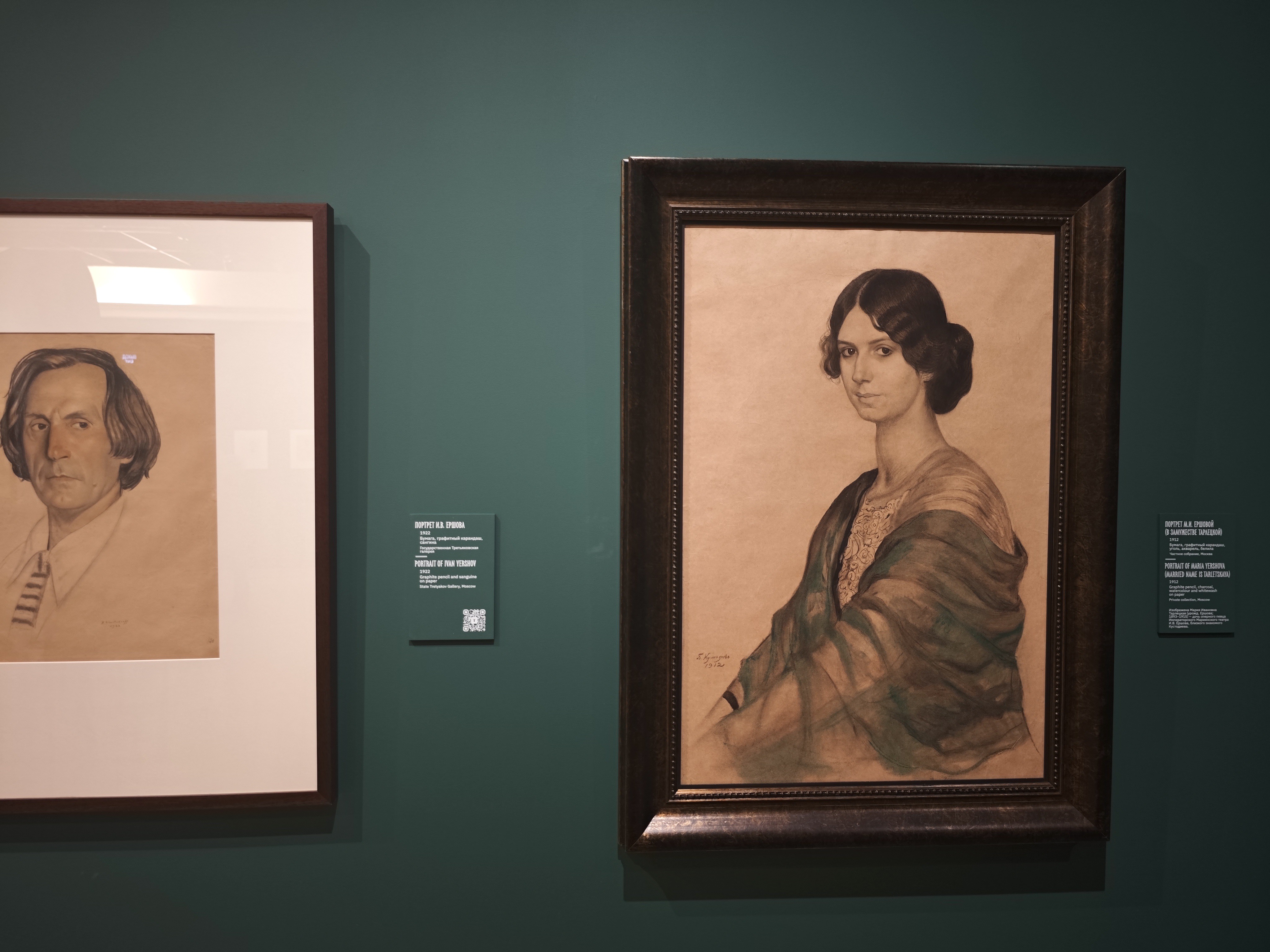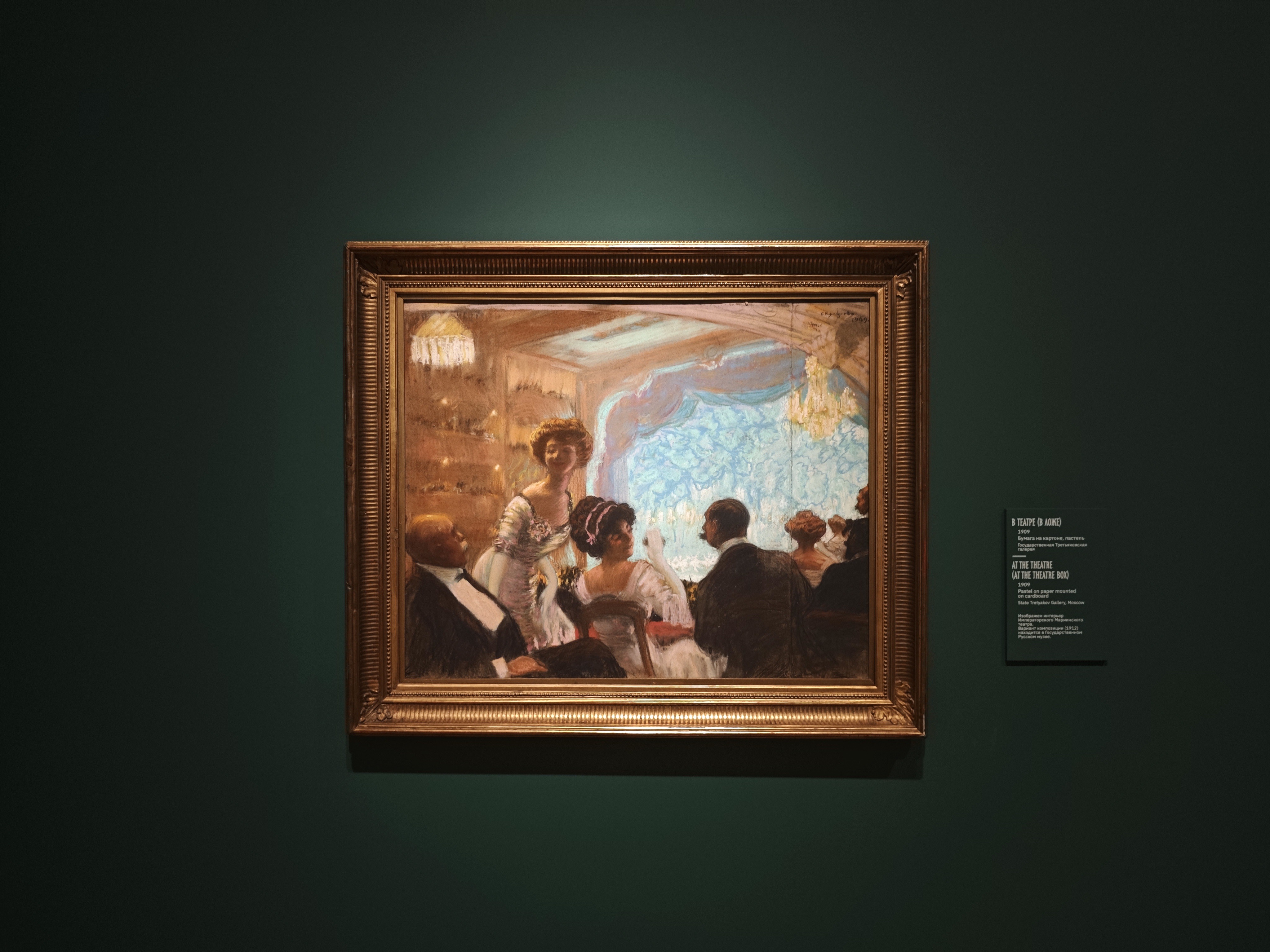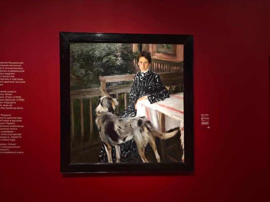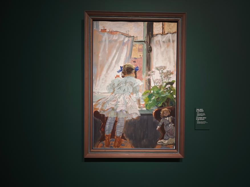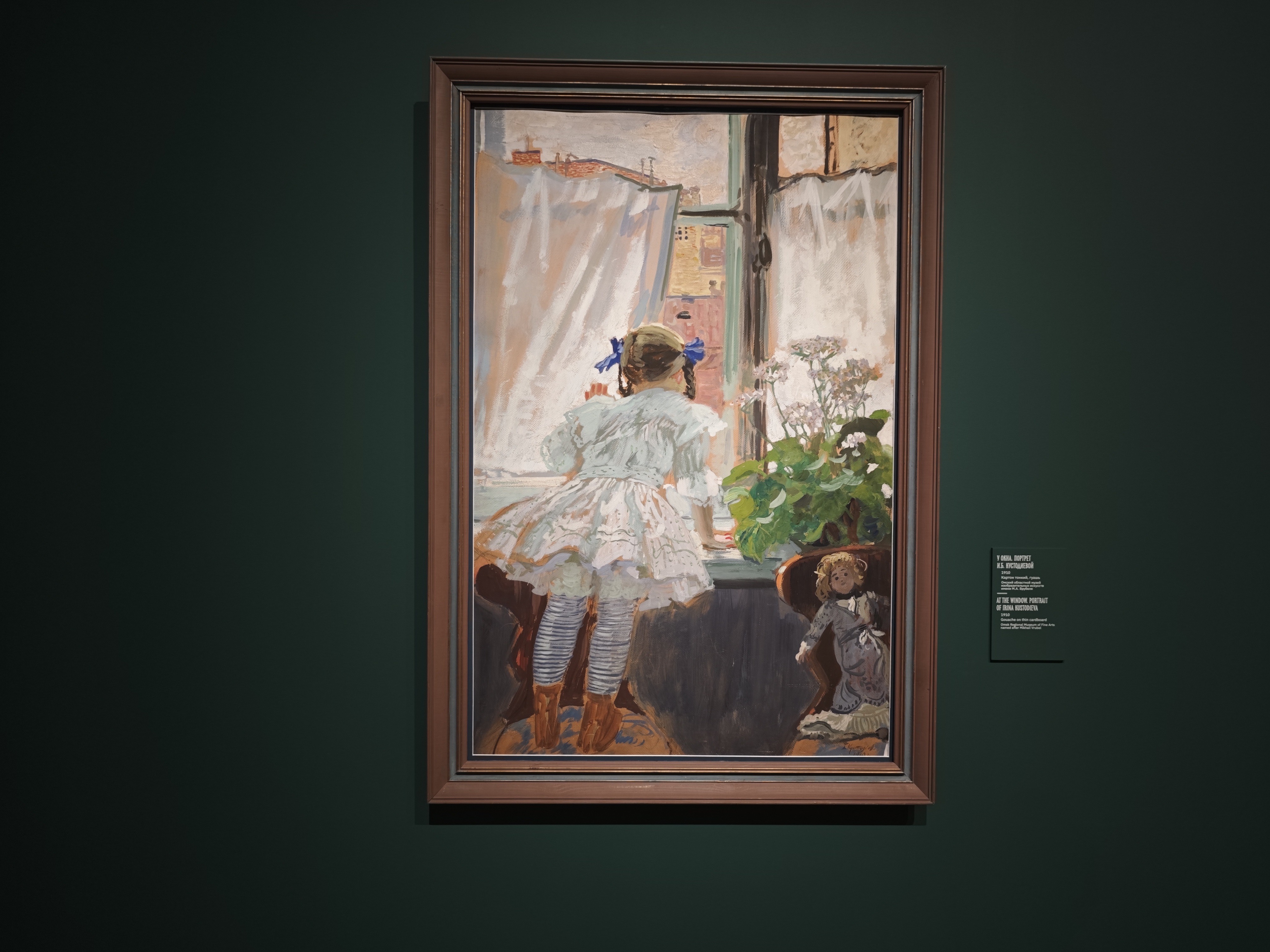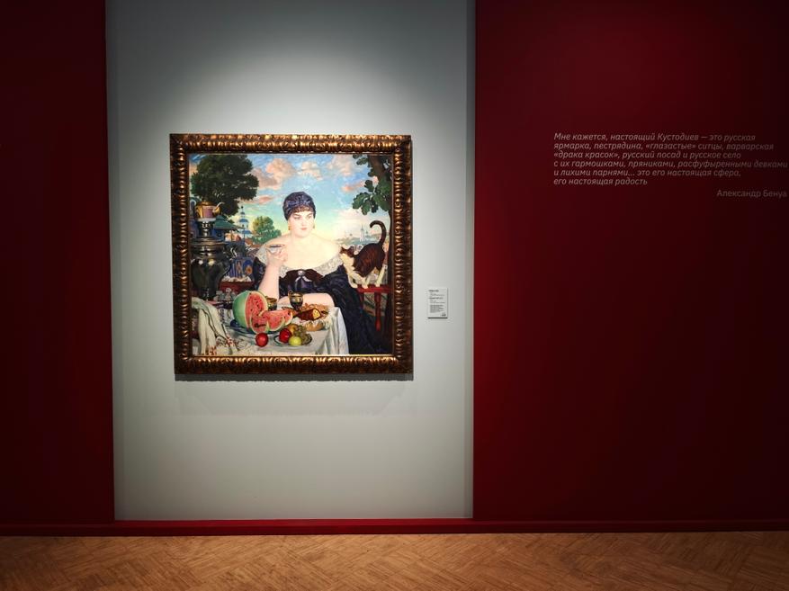 Это примечательный экспозиционный случай, когда художественная жизнь человека показана не через родителей (а Кустодиев очень любил мать), не через учителей или друзей, а именно через супругу и детей.