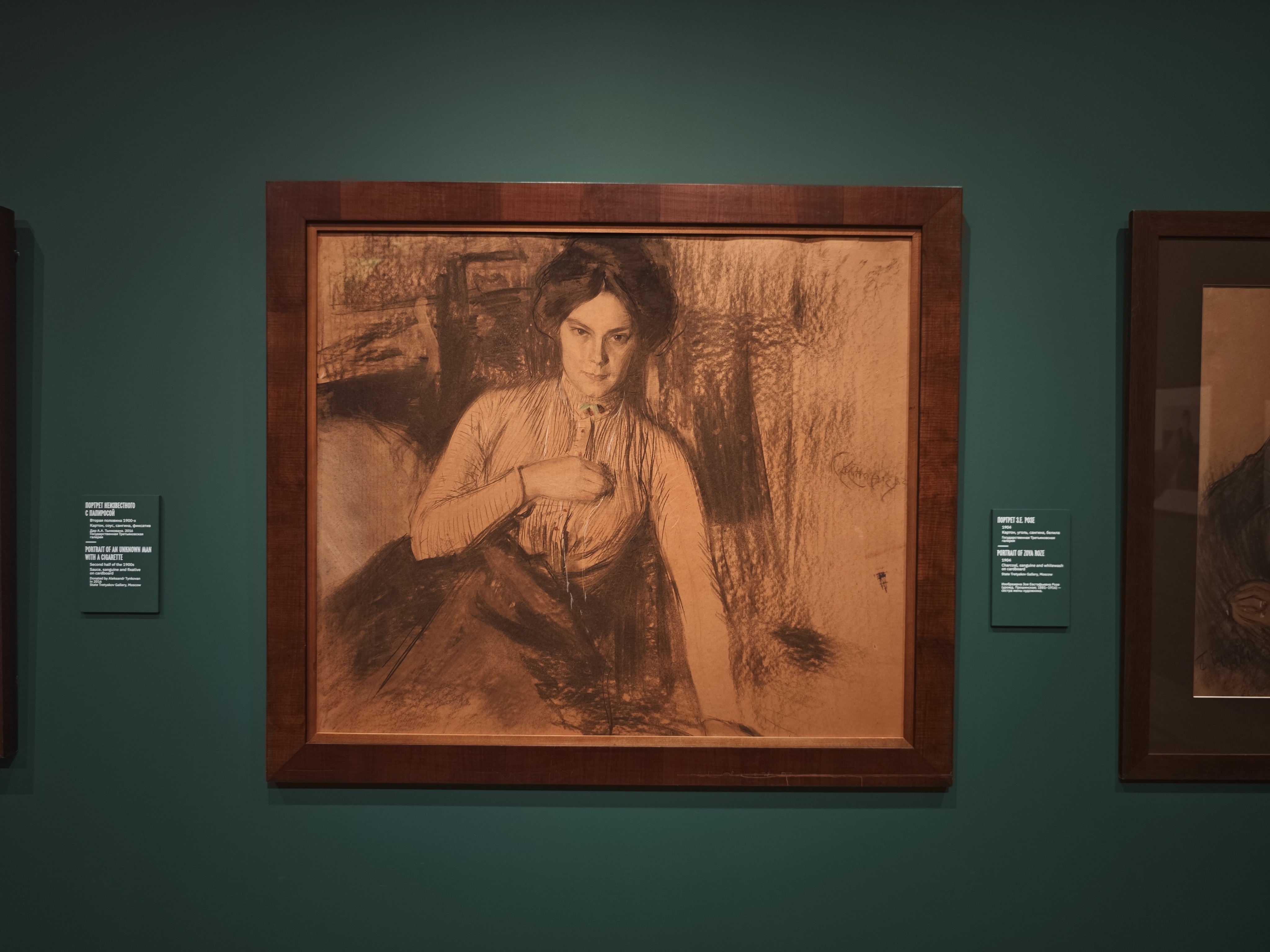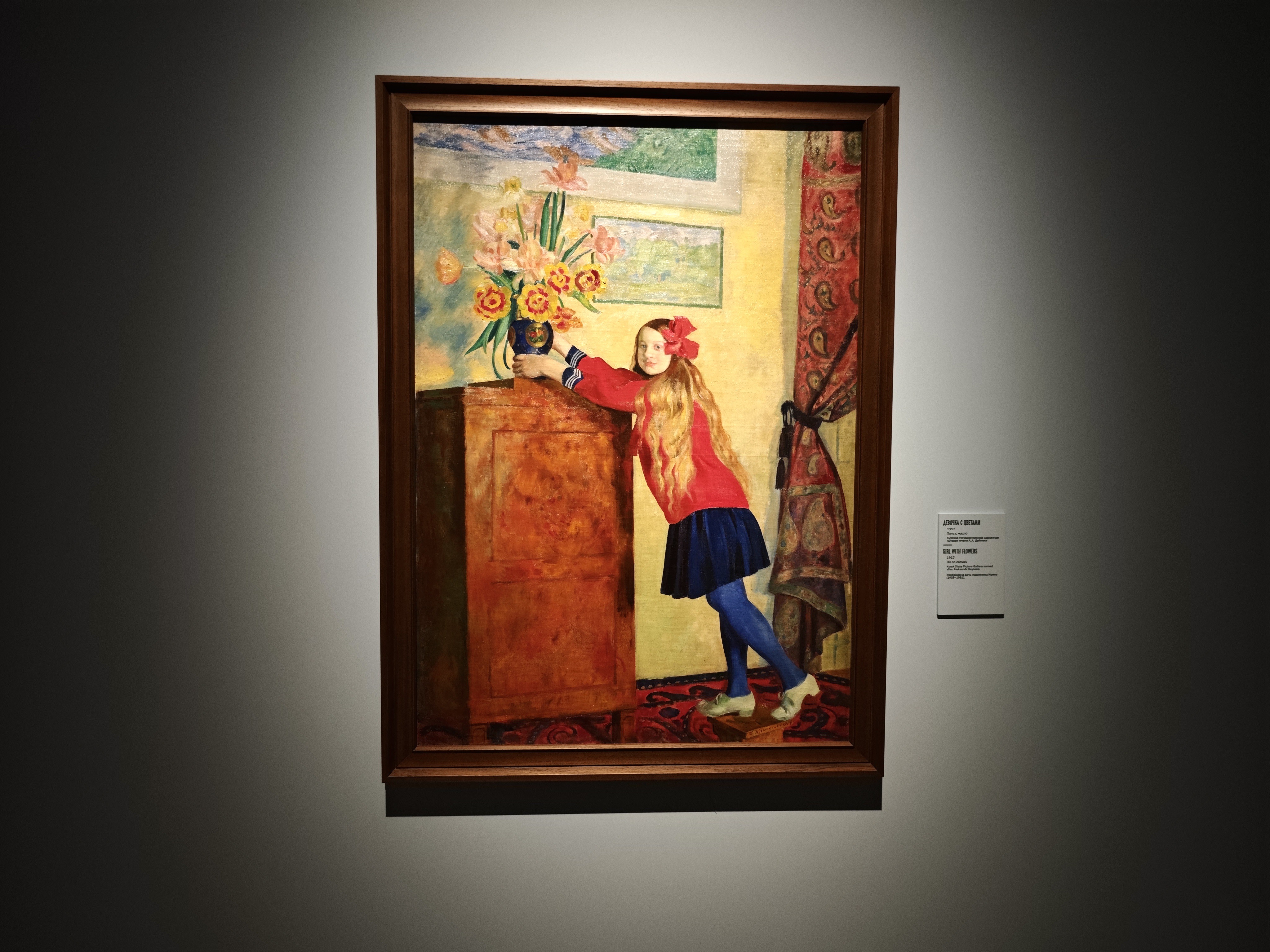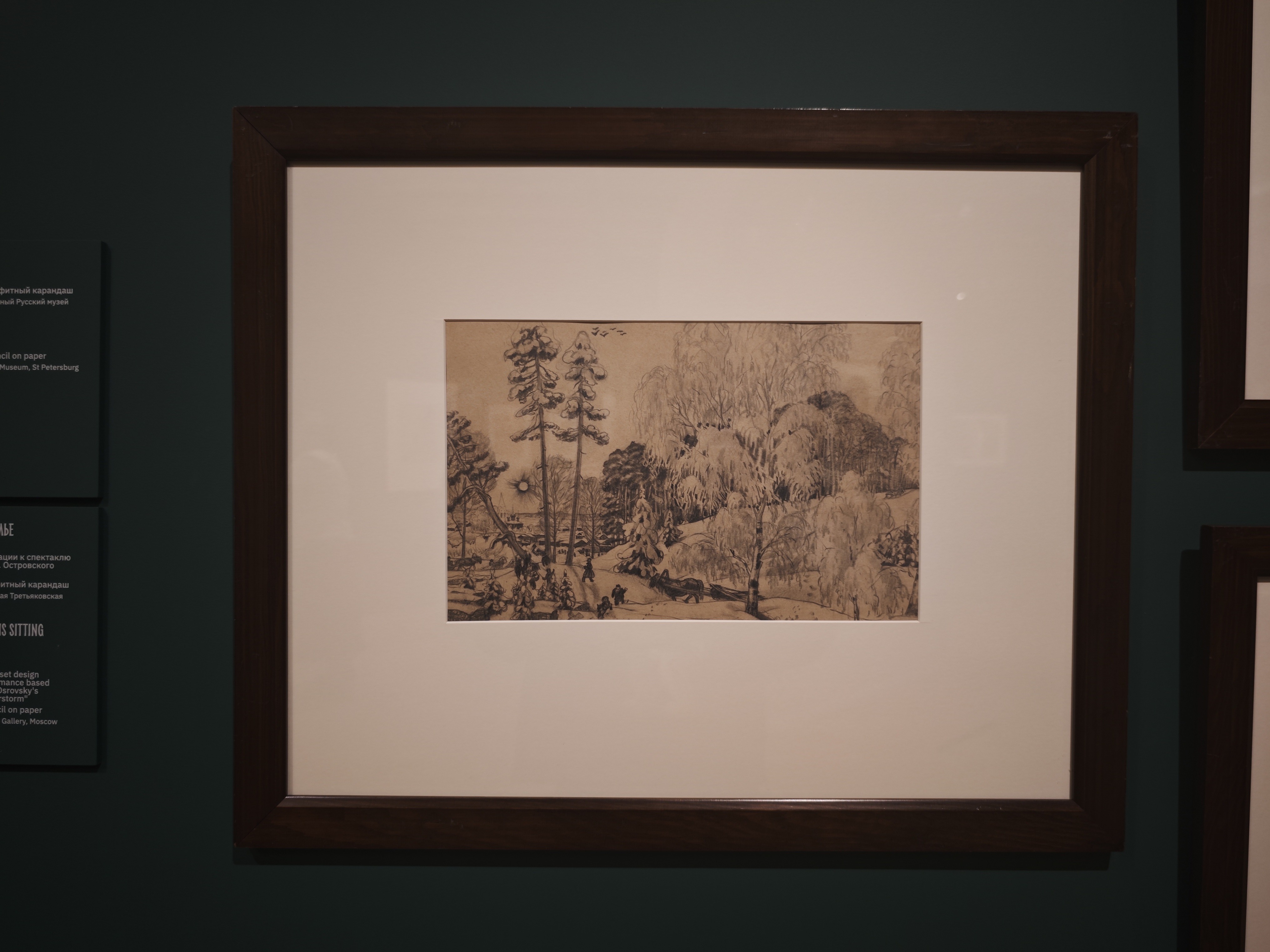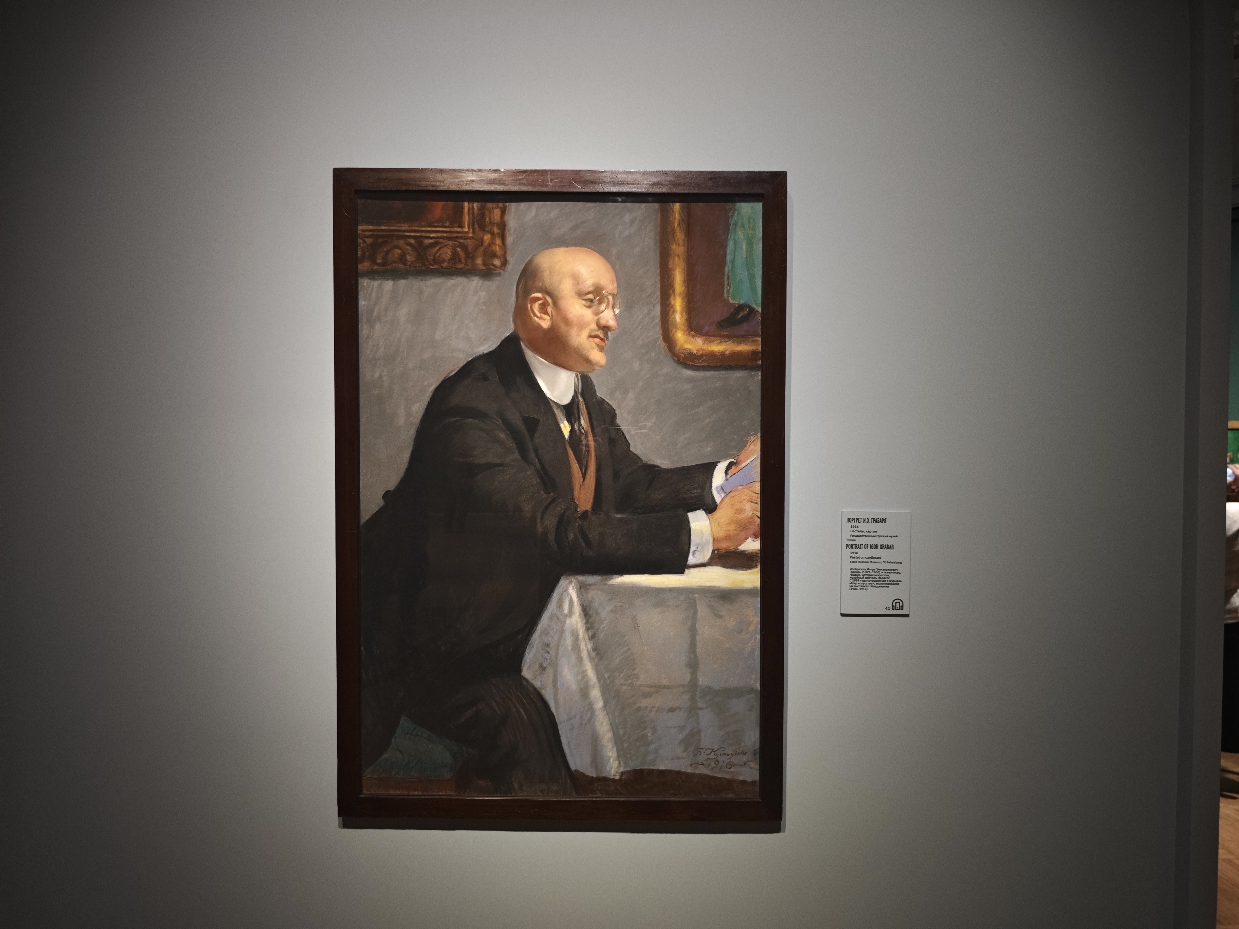 Это примечательный экспозиционный случай, когда художественная жизнь человека показана не через родителей (а Кустодиев очень любил мать), не через учителей или друзей, а именно через супругу и детей.