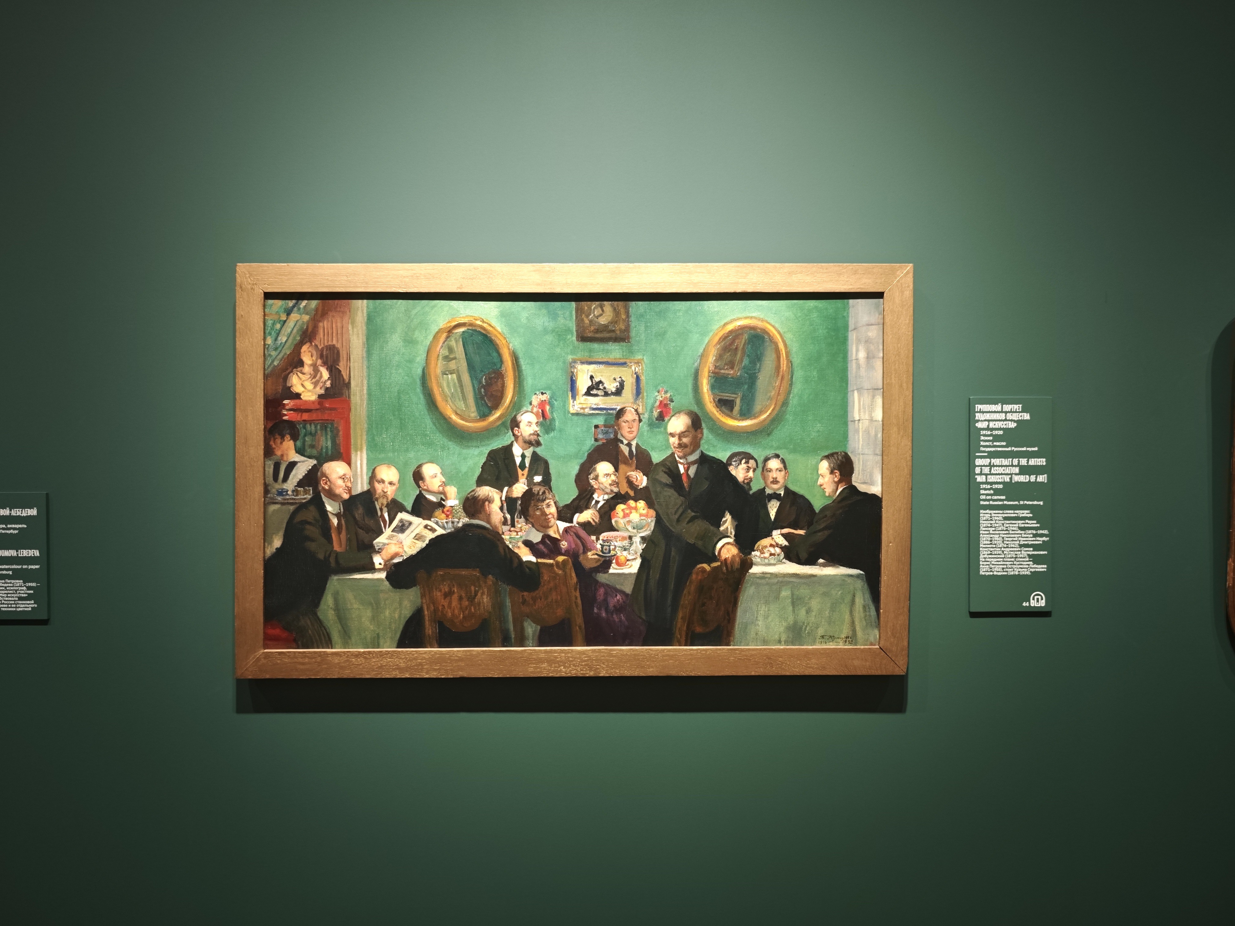 Успел запечатлеть художник и близких по духу (и цеху) людей. Отдельный зал посвящен его картине, на которой запечатлены друзья по объединению «Мир искусства».