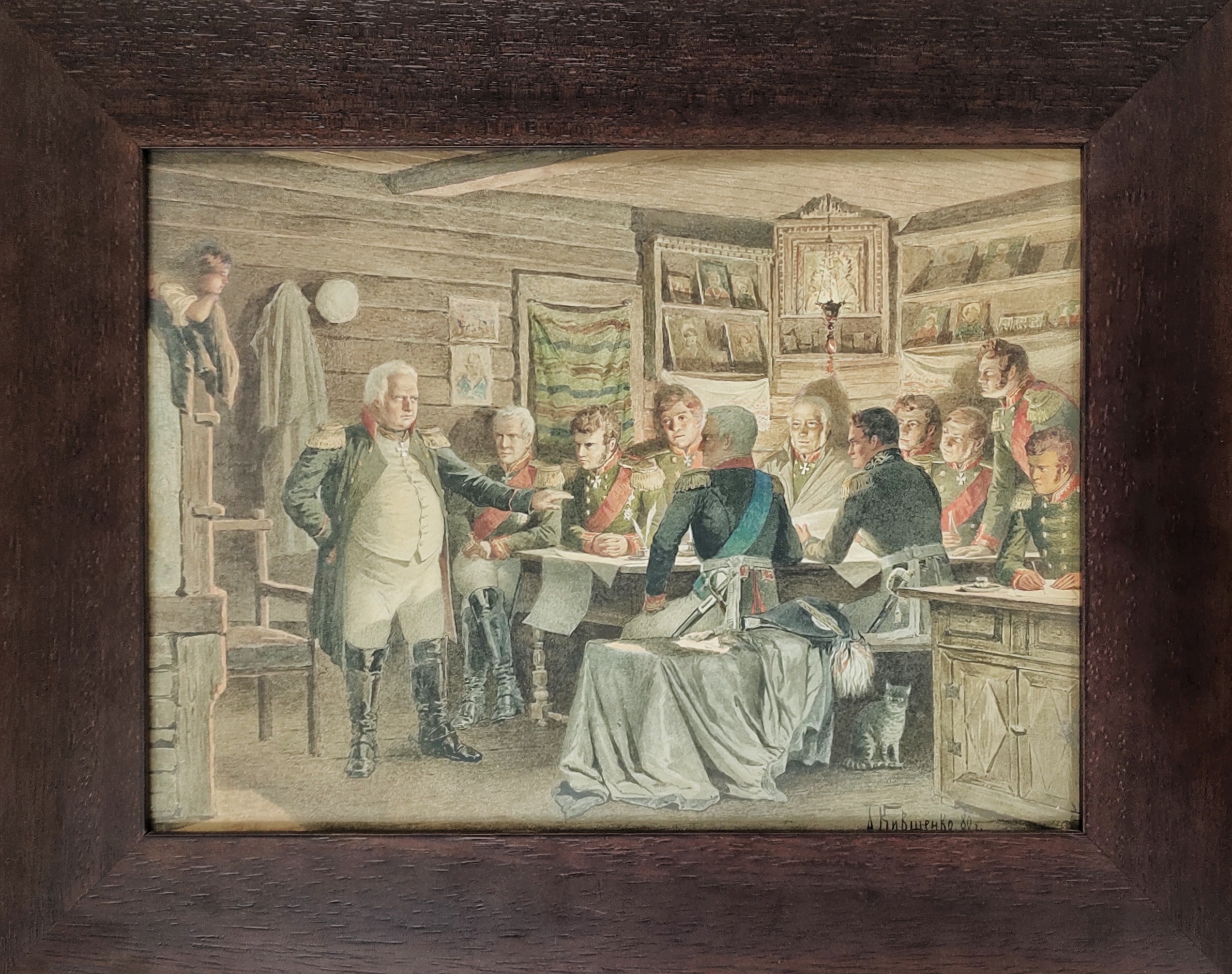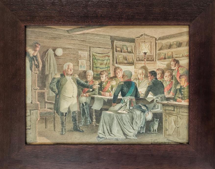 При этом по своей значимости работы, предоставленные на торги, довольно серьезные. У того же Кившенко — это один из вариантов его знаменитого «Совета в Филях» (ГРМ, ГТГ), который, вероятно, предназначался уже для тиражирования и печати:
