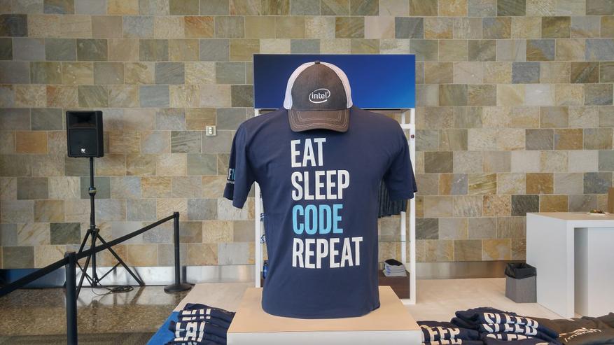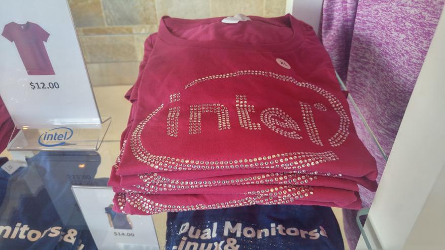 Розовые футболки с эмблемой Intel, выложенной стразами, и другие товары с IDF 2016