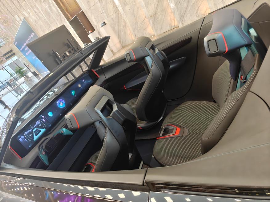 В холле на подиуме представлена модель будущего — 3 пассажирских кресла, вместо руля джостик.