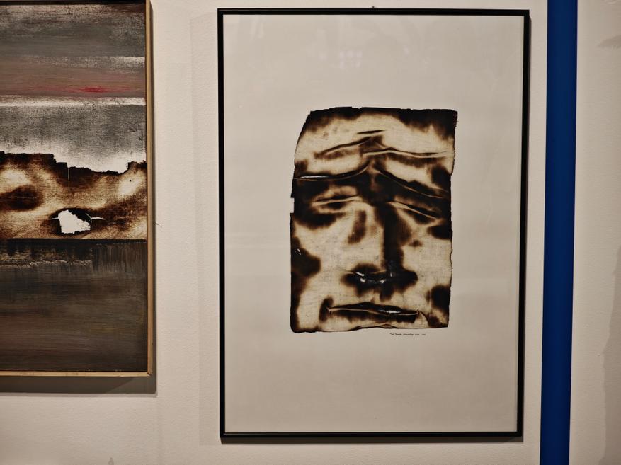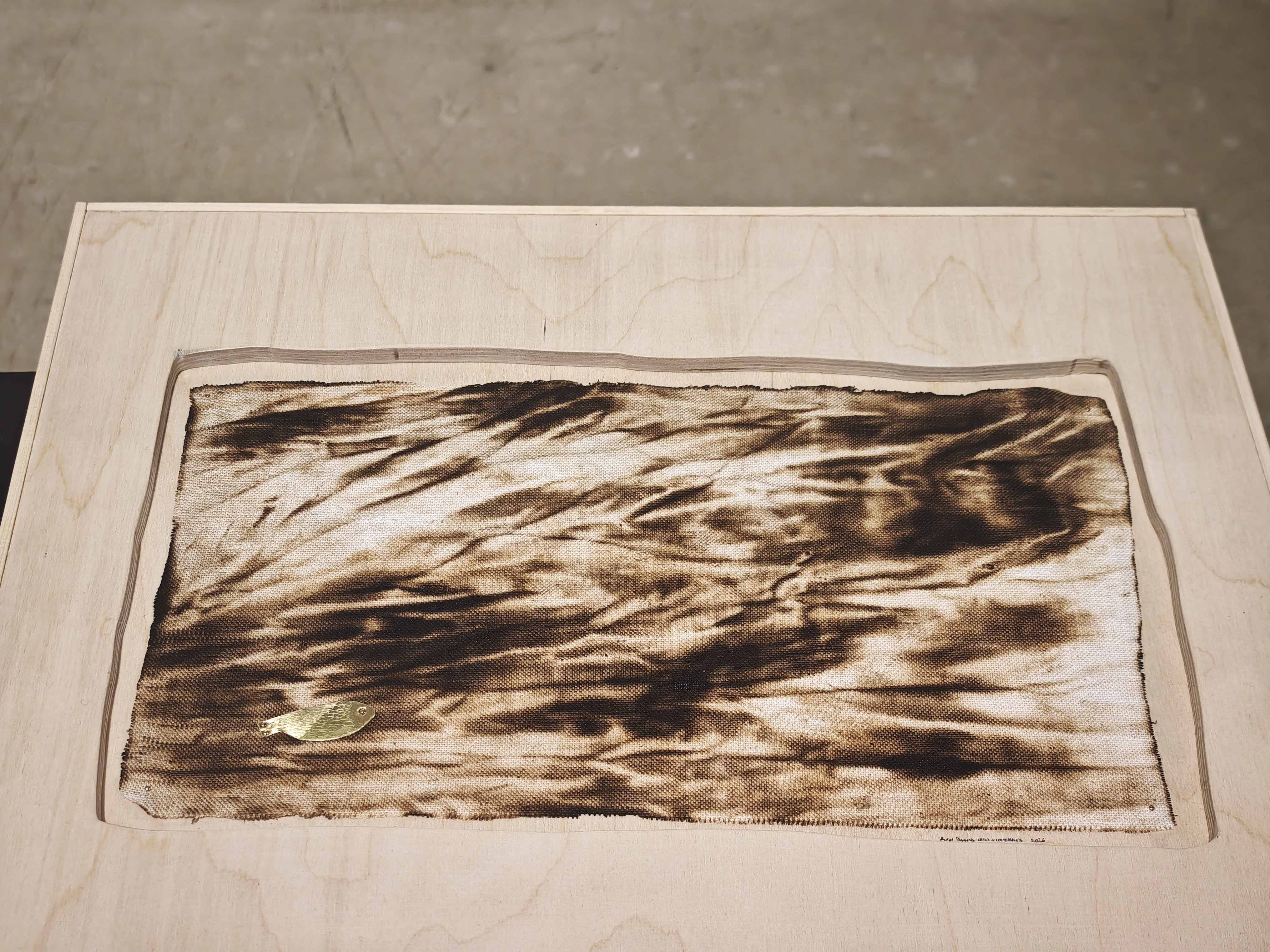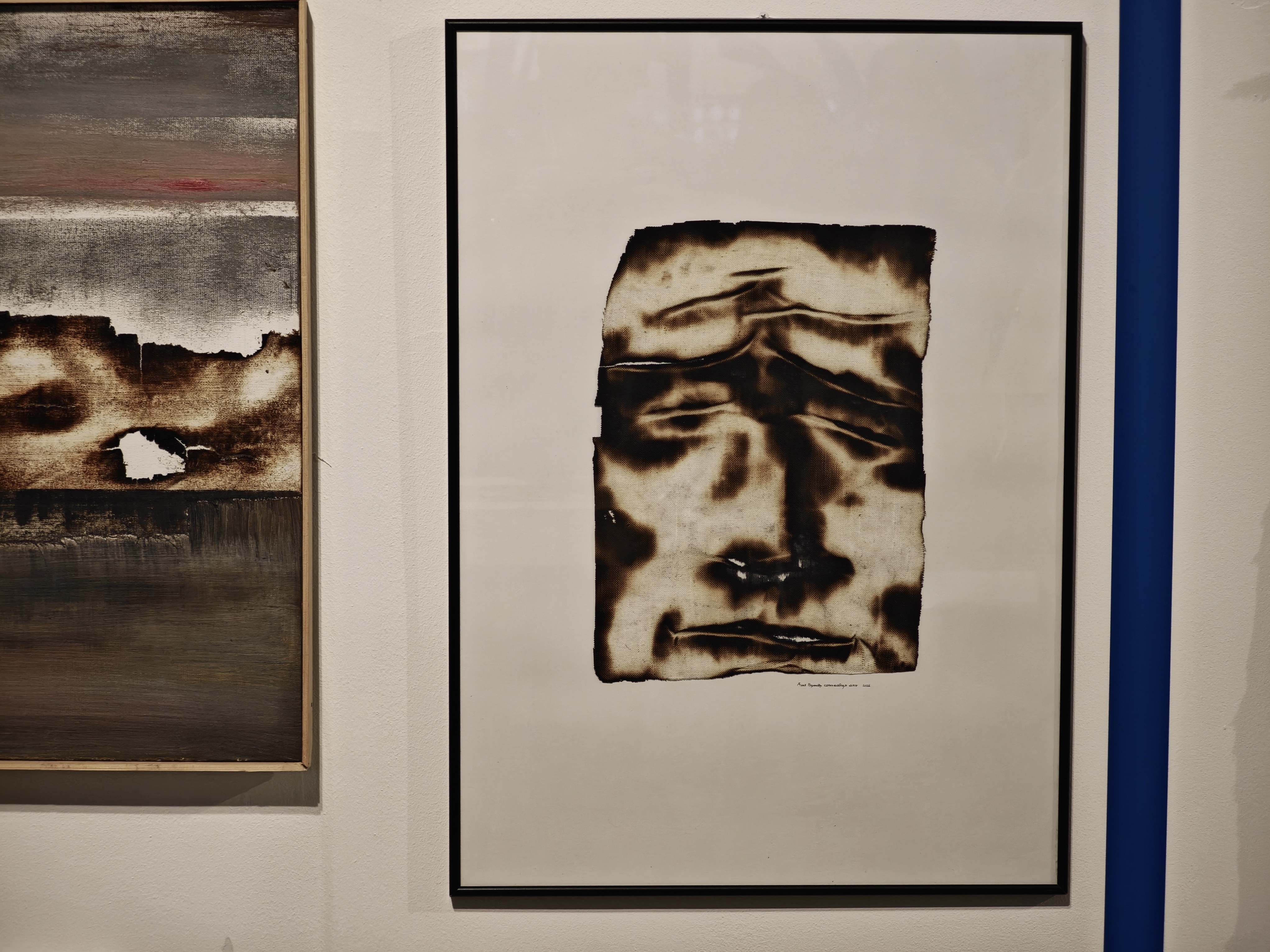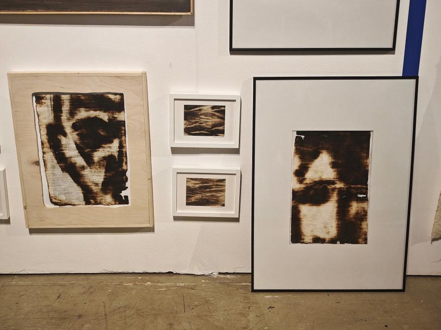 Художник использует лен и горелку, и это, наверное, можно назвать «выжиганием по ткани». При этом, очевидно, что особенности материала не игнорируются.