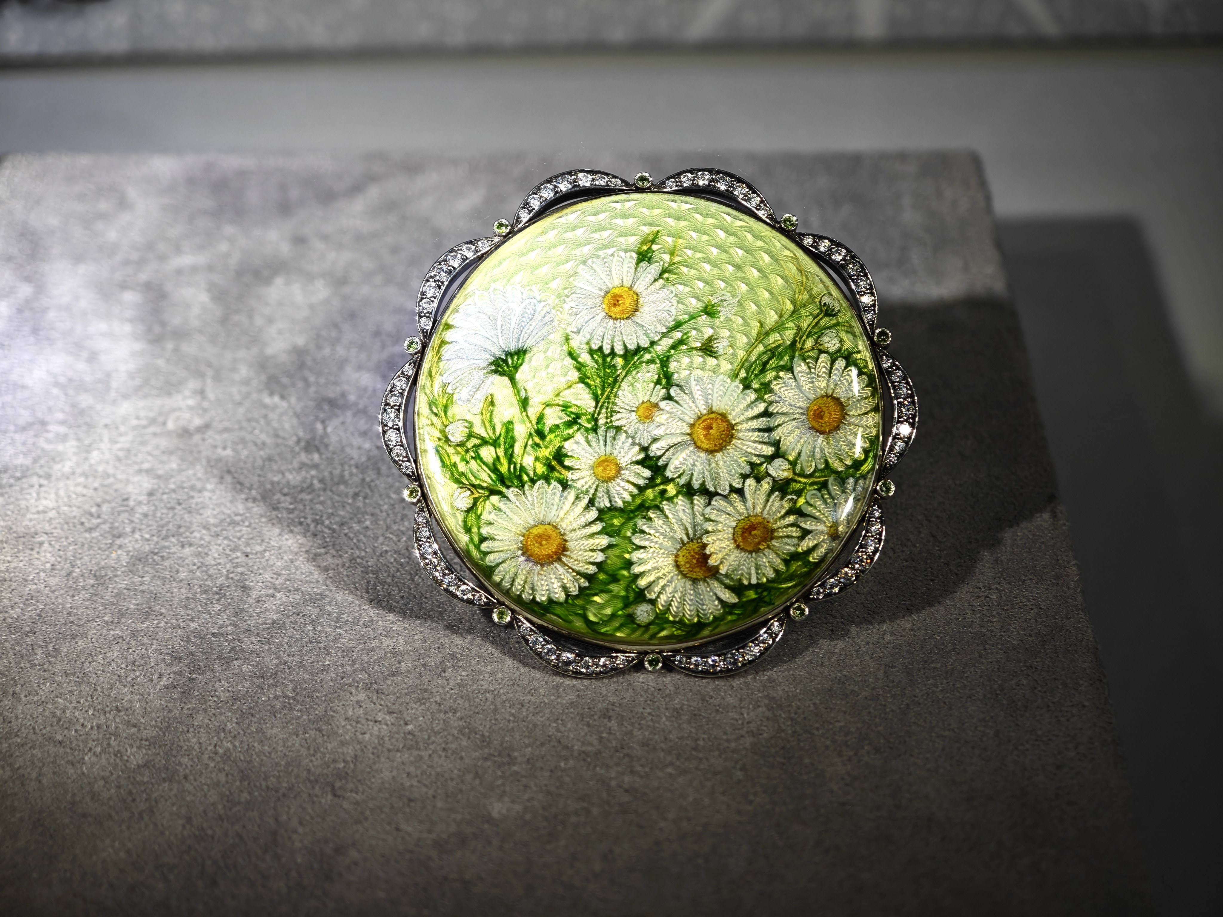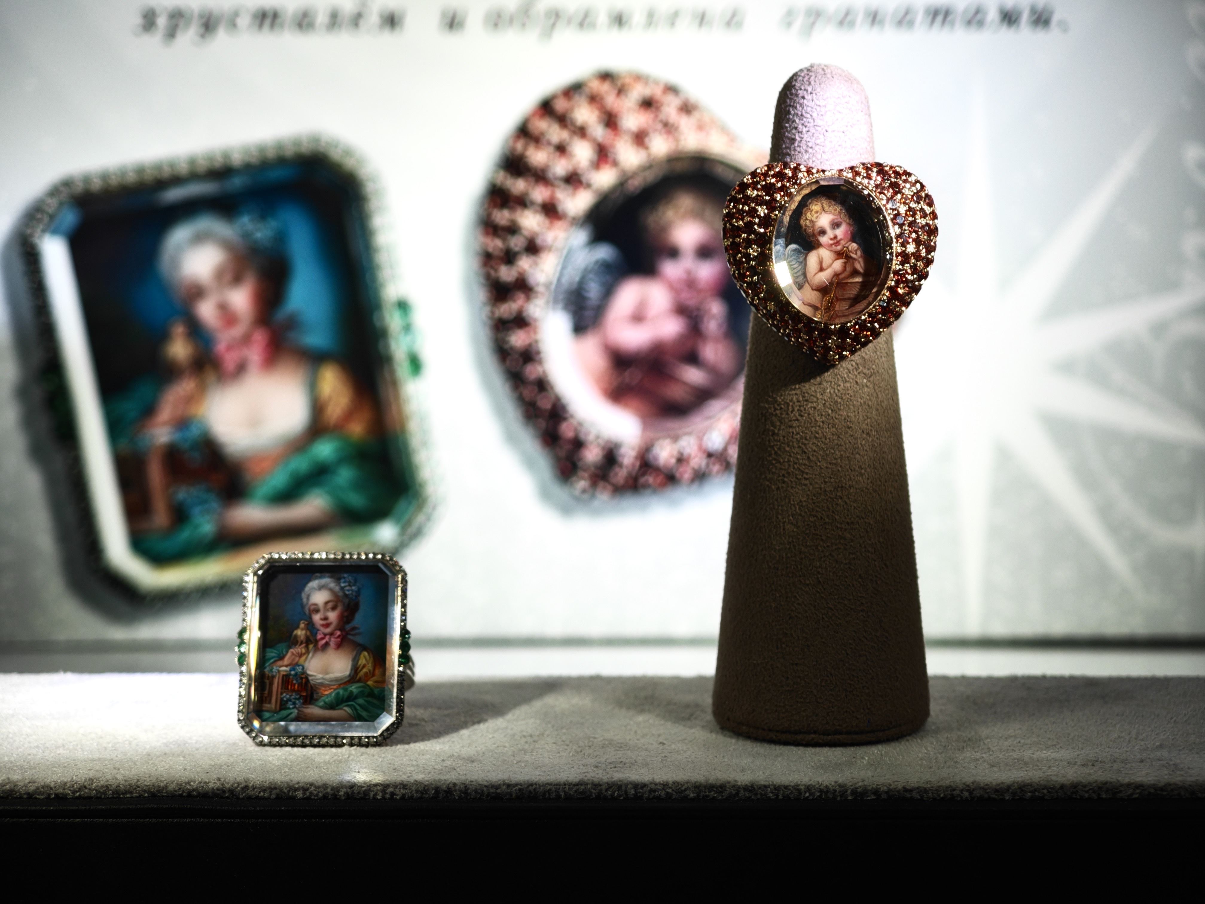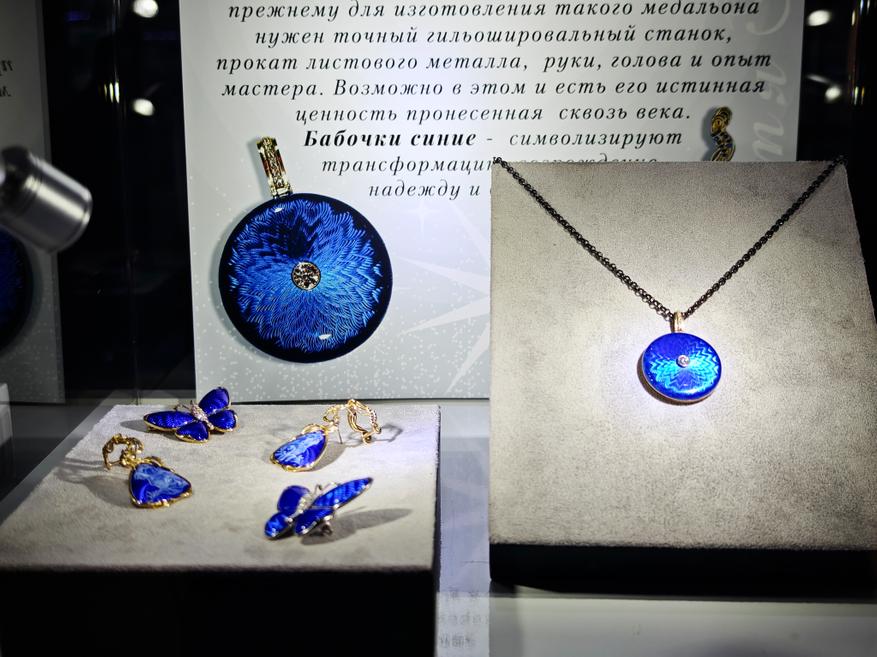 Многие их ювелирные украшения созданы вместе, где Алексей Лавлинский демонстрирует исключительное мастерство гильоше и горячей эмали, а Виктория Синельникова — искусство лаковой миниатюрной росписи.