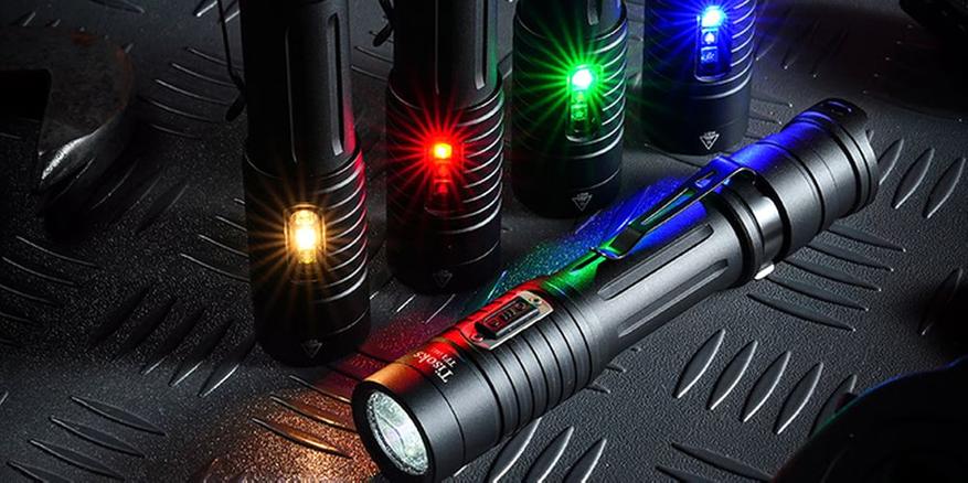 Все реже можно увидеть новый светодиодный фонарь только с одним типом света. Новый тренд повлиял и на японский стартап Tisoks, они представили на площадке «Кикстартер» EDC-фонарь TF1. У этой модели помимо основного белого света (светодиод HP50.2 с температурой 6000K) со световым потоком 2500 люмен и видимостью луча 236 метров, есть боковая зона светодиодов (желтый, красный, синий, зеленый) + УФ светодиод с длиной волны 365 нм. Питание фонаря — элемент 18650 с емкостью 2600 мАч с портом Type-C для реверсивной зарядки.