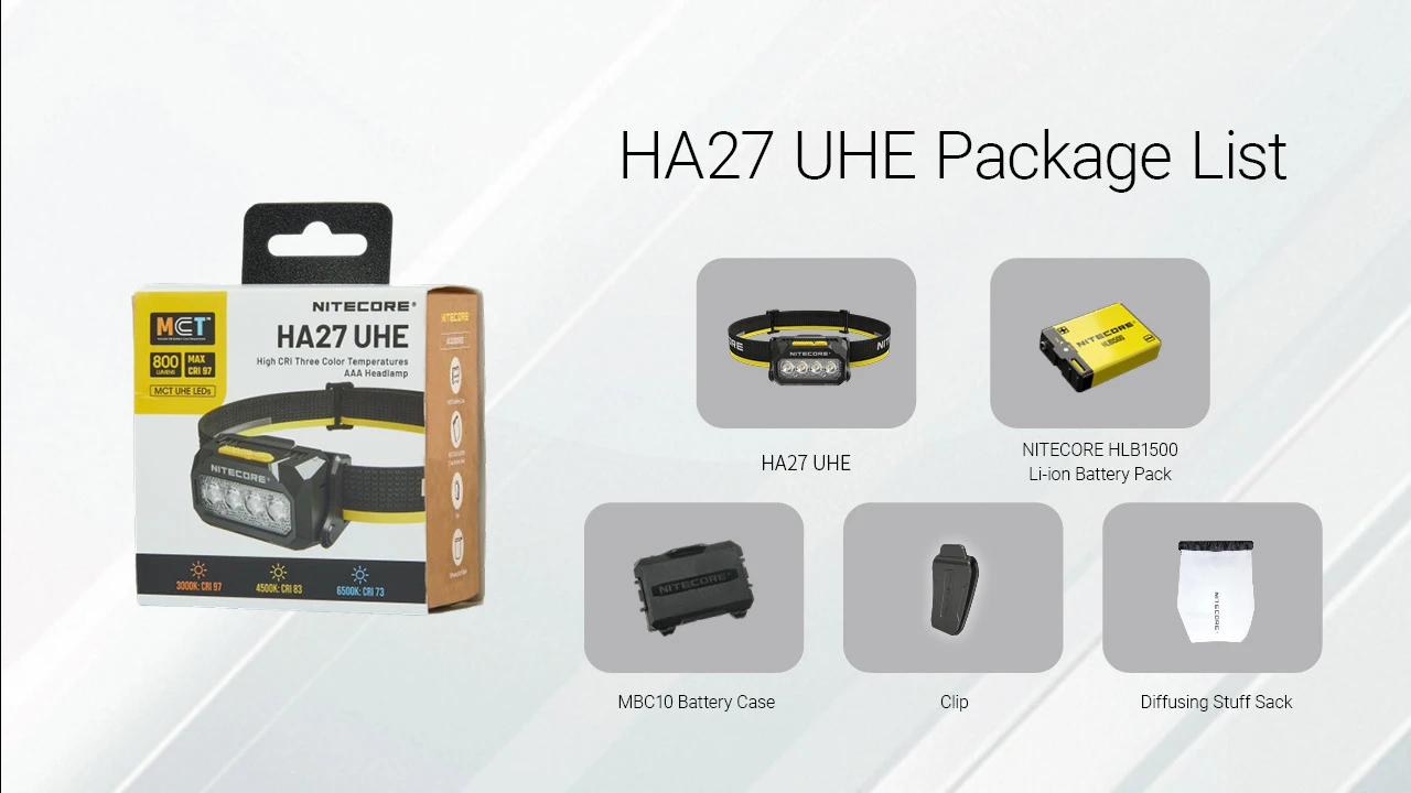 Компания производитель фонарей Nitecore продолжает оснащать новые модели фонарей светодиодами с изменяемой цветовой температурой и высоким значением индекса цветопередачи. Новинка, налобный фонарь HA27 UHE построен на четырех двухъядерных светодиодах MCT UHE (с оттенком света 3000 К-4500 К-6500 К) и дополнительным для красного света. CRI меняется в пределах 73-97. Максимальный световой поток модели до 800 люмен (видимость зоны освещения до 150 метров), ширина луча 100 градусов.