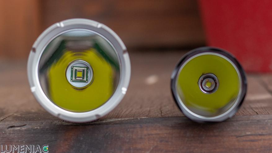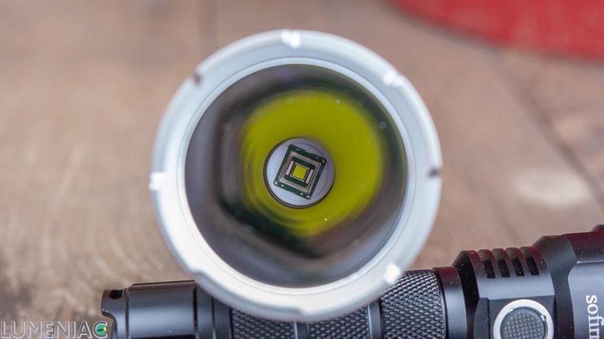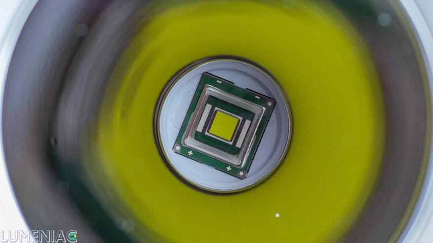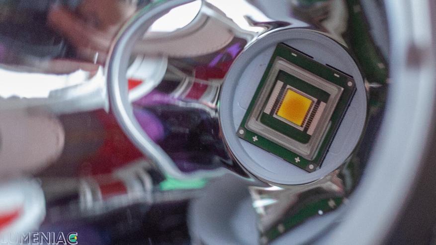 Под ним сравнительно большой гладкий рефлектор, на дне которого установлен самый впечатляющий на сегодняшний день светодиод, его величество Luminus SBT90.2.