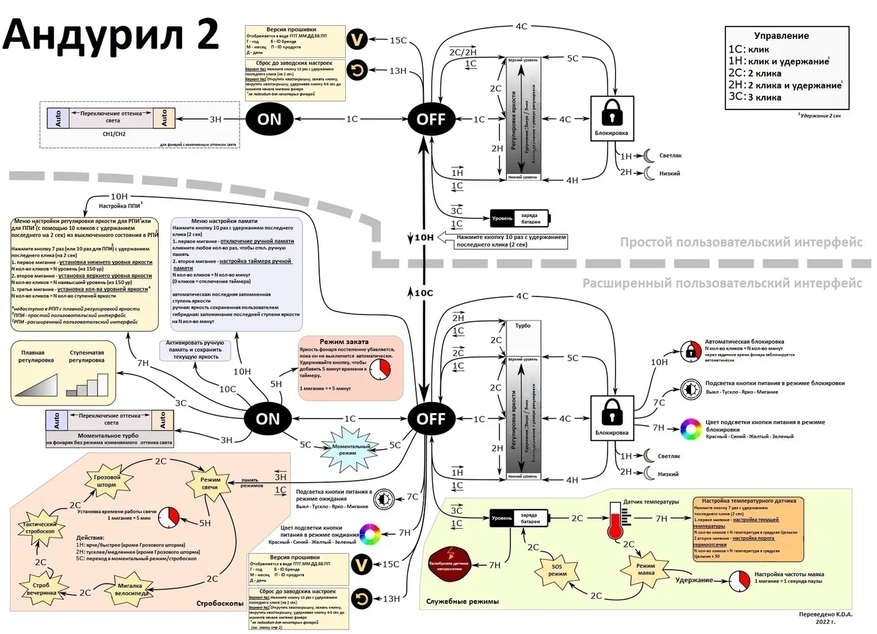 Ну, а если вы решитесь, то можно перейти в продвинутый режим (10С на схеме ниже = 9 щелчков + удержание) и там вдоволь наиграться со всем, что даёт Anduril. А даёт он вообще всё, что только угодно душе продвинутого пользователя. Полноразмерную схему можно скачать тут
