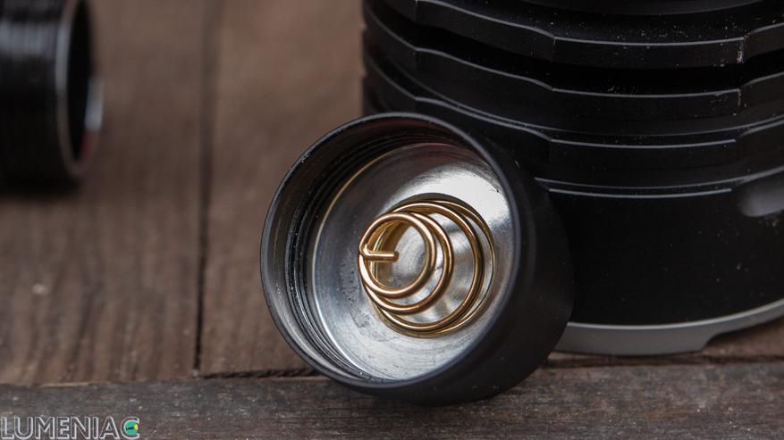 Пружина есть лишь со стороны хвоста, а со стороны головы вместо неё контактная площадка. Вполне здравое решение, в силу больших токов, которые потребляет этот светодиод.