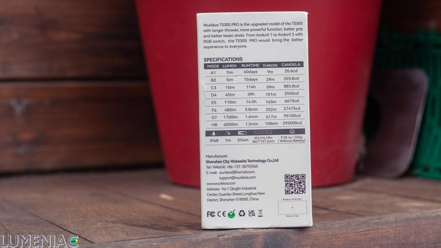 C Wurkkos TS30S pro получаем красивую (и надорванную в моём случае) суперобложку. Вся основная и важная информация уже указана сзади и на наклейке на коробке.