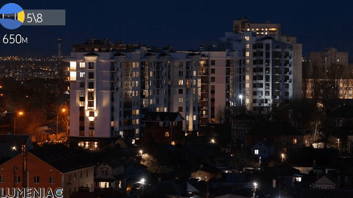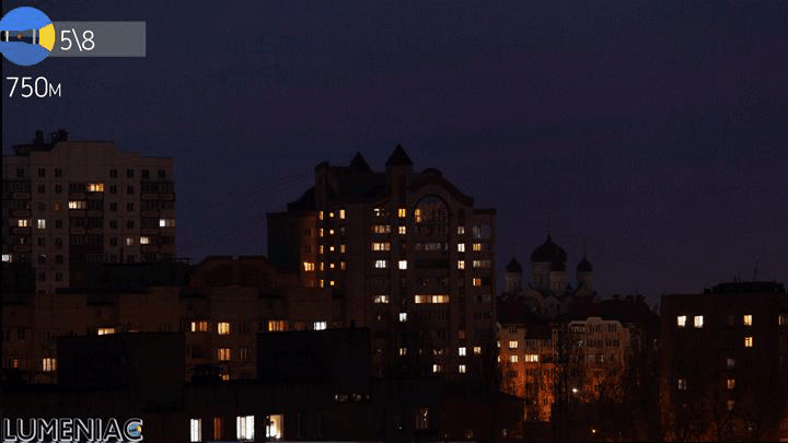 Luminus SBT90.2 светодиод в моём экземпляре оказался фантастически хорош по цветовой температуре, я никак не ожидал 5000К! Это очень, очень хорошо с позиции дальнобойности. А с ней у фонарика все в полном порядке. Он однозначно даёт видимый свет на дистанции в 750м. У меня есть все основания верить в 1км заявленной производителем дальнобойности. Разумеется, фонарик не будет работать долго на этом уровне. Но вы однозначно успеете увидеть, все, что нужно даже при «горячем старте» из какого-то старшего режима. Впрочем, тут очень много зависит от температуры воздуха и присутствии ветра. А ведь Anduril, кстати, даёт возможность поднять порог срабатывания термоотсечки.