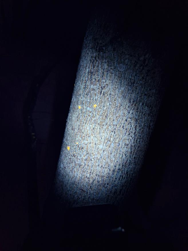 Акриловое стекло чуть утоплено, светодиоды расположены в ряд, основной белый (Luminus SFT-42R) с гладким рефлектором в центре. У УФ светодиода текстурированный отражатель.