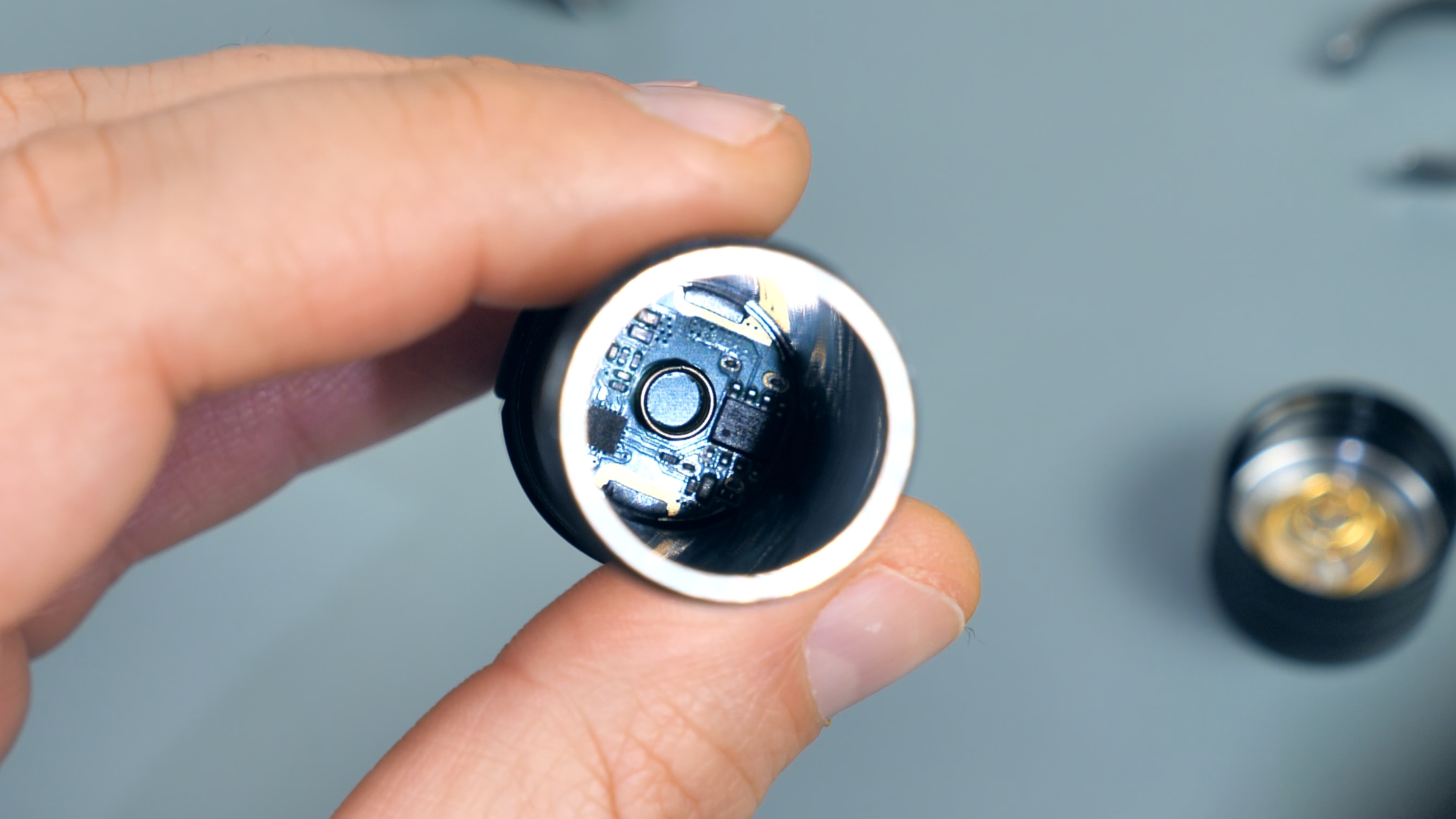 Плюсовой контакт на драйвере в голове фонаря также имеет антикоррозийное покрытие, которое препятствует его окислению.
