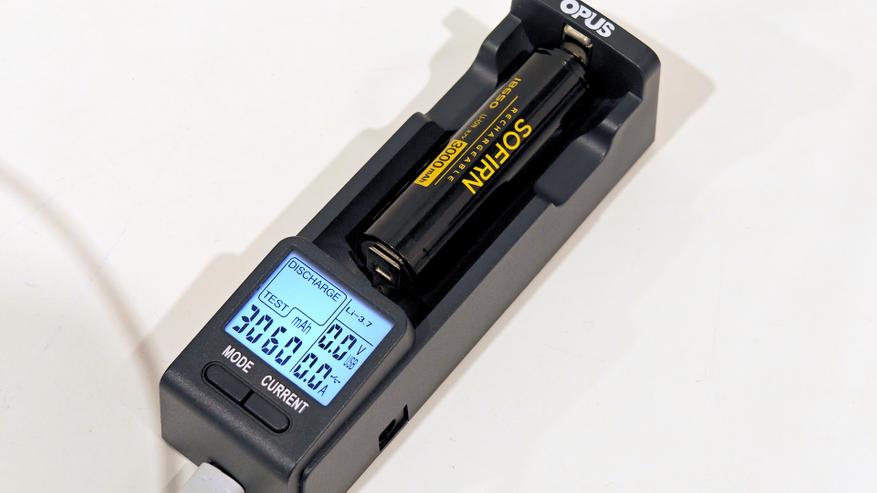 Тестирование подтвердило соответствие фактической ёмкости заявленной. В первом же тесте, без предварительной раскачки, аккумулятор выдал даже немного больший результат — 3060 мАч. Аккумуляторы Sofirn неизменно соответствуют заявленным характеристикам.