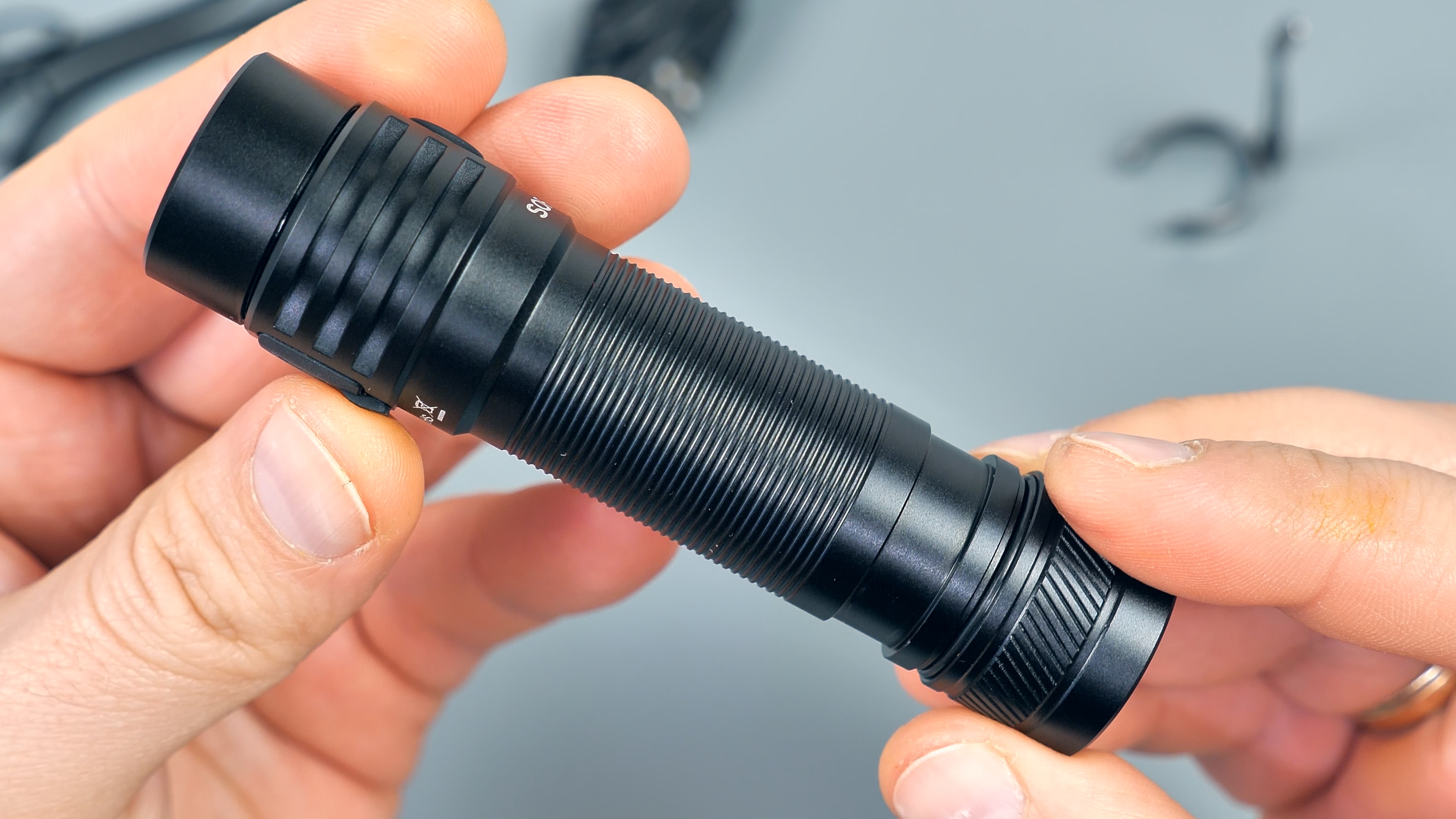 Фонарь отличный, но, конечно же, слабые места имеются. Первое, что бросилось в глаза — имея плоский хвостовик, фонарь не имеет встроенного магнита. Наверное, это один из пунктов, на котором производитель сэкономил, чтобы удержать цену. Конечно, с магнитом было бы лучше, но и без него можно обойтись. Зато в комплекте есть темляк и клипса.