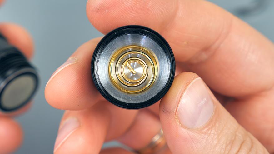 Контакт в хвостовике представляет собой мощную пружину с антикоррозийным покрытием, которая препятствует окислению и мерцанию фонаря в дальнейшем.