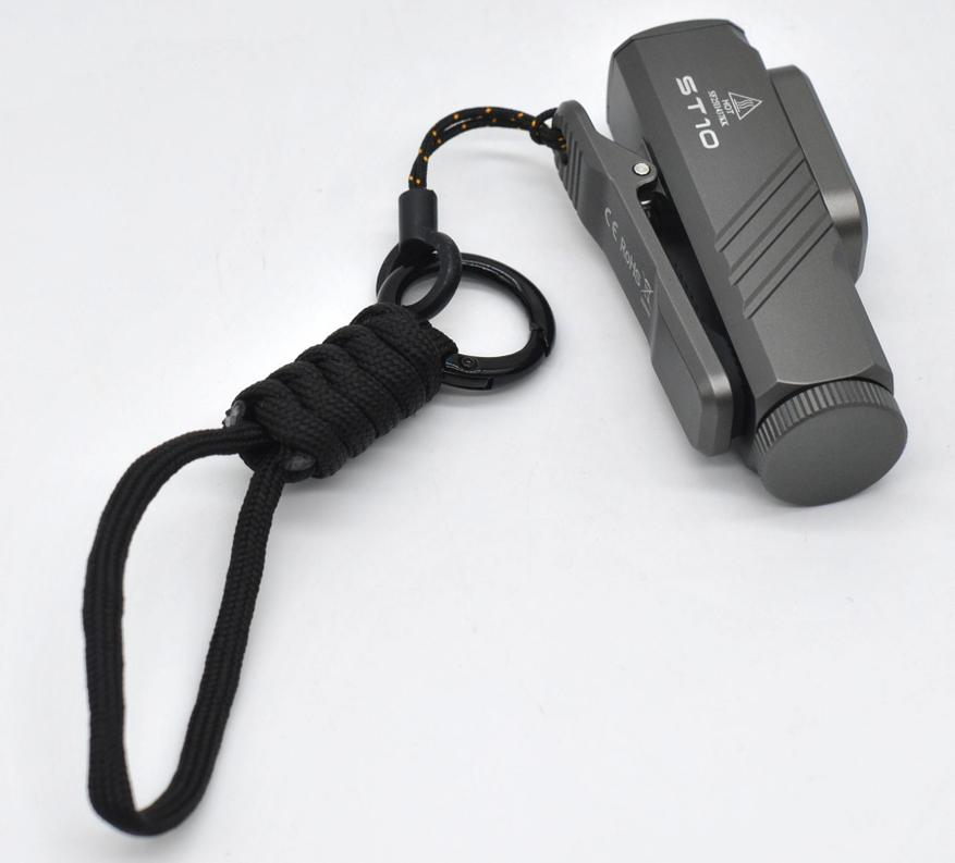 В клипсе есть отверстие для ремешка (он тут тактического вида, но не самый удобный):