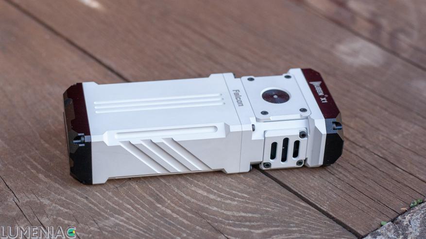 Собственно, форма Wuben X-1 falcon — не привычный цилиндр, а брусок-кирпичек-паралеллограмм — тут называйте как хотите. Причина такой формы простая — 2 аккумулятора тут расположены бок о бок друг с другом, а не последовательно. Жаль что фонариков с таким форм-фактором на рынке немного, мне они весьма по душе сочетанием размера и общей ёмкости аккумуляторов. Именно таким, кстати, и был мой первый фонарик от крупного бренда — Nitecore EC4.