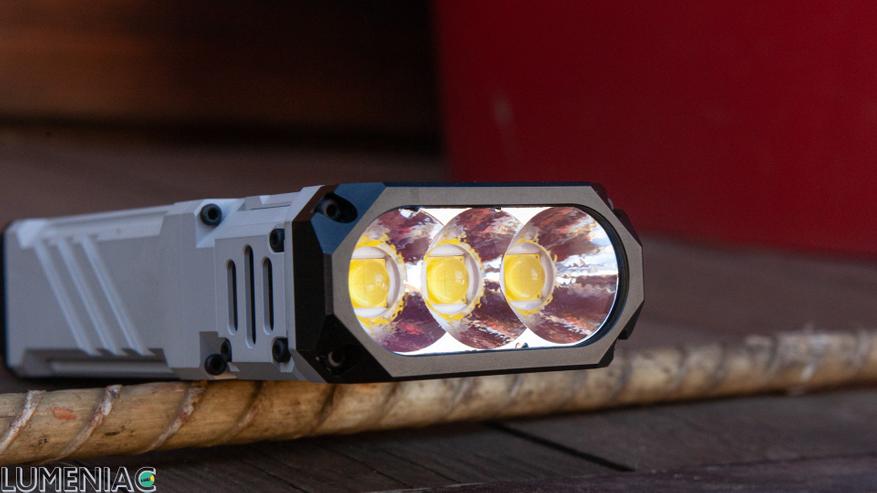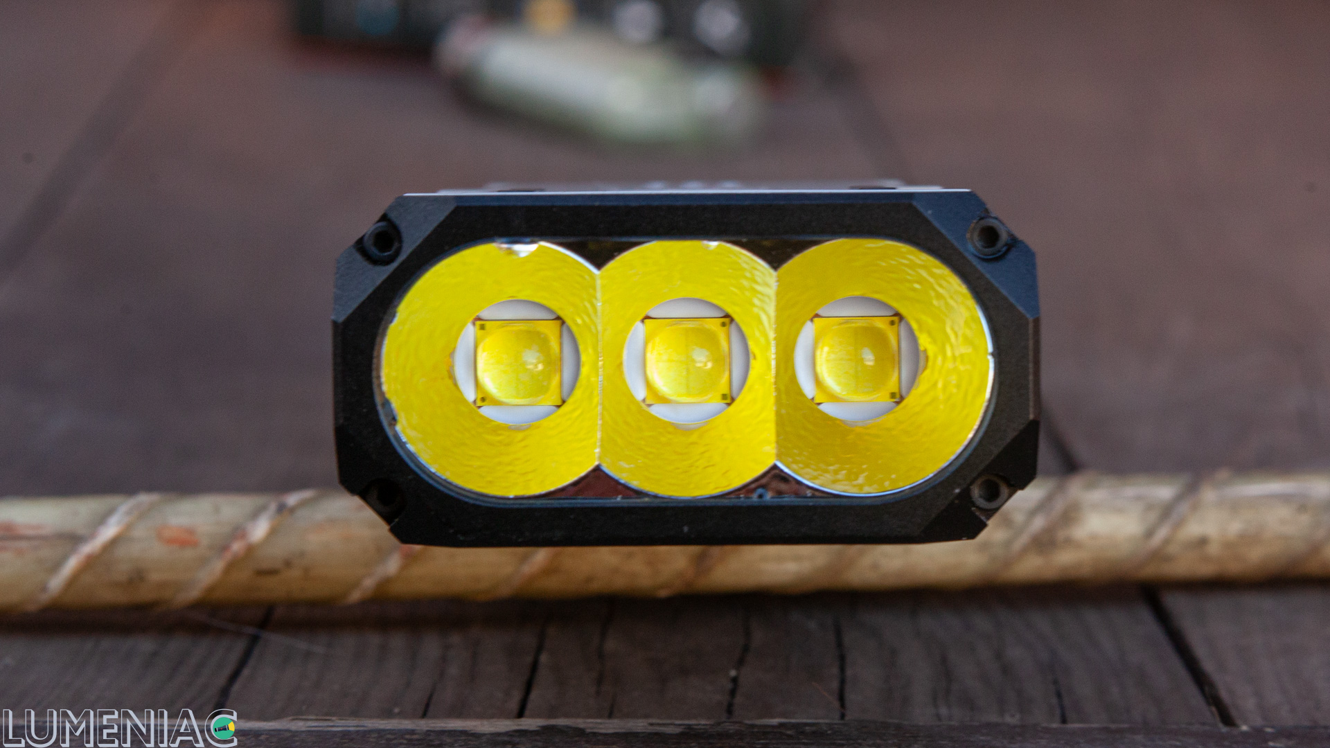 За свет отвечают 3 Cree XHP70.2 светодиода, расположенных на дне неглубоких текстурированных рефлекторов. Стекло закалённое, с просветлением. Кстати, по какой-то причине производитель везде замазал или переиначил Cree… а что скрывать-то?