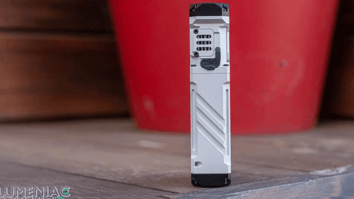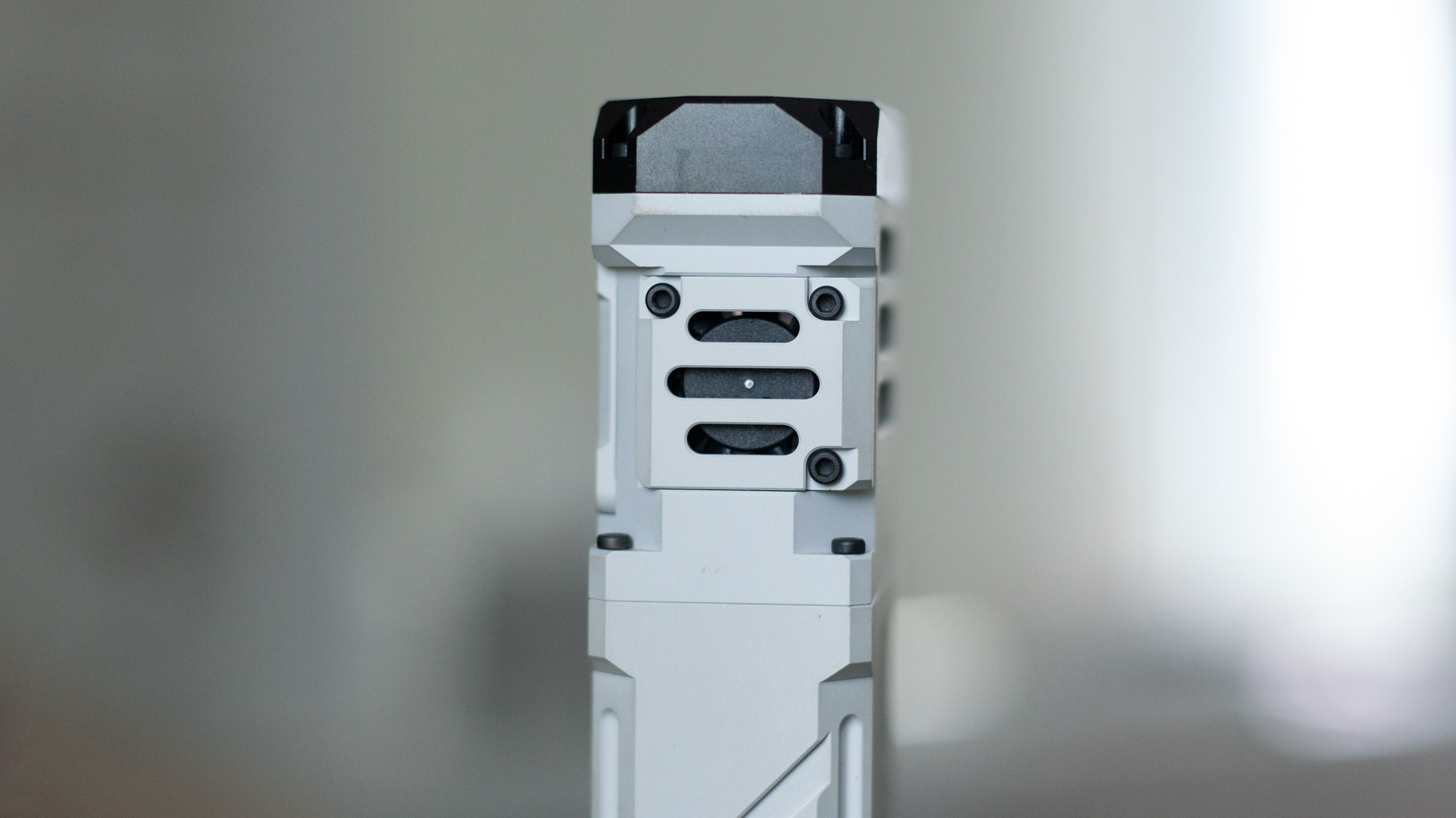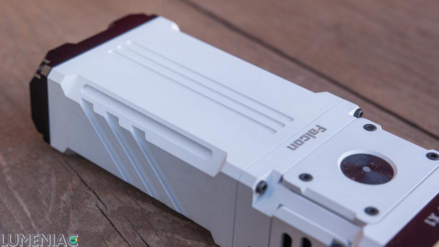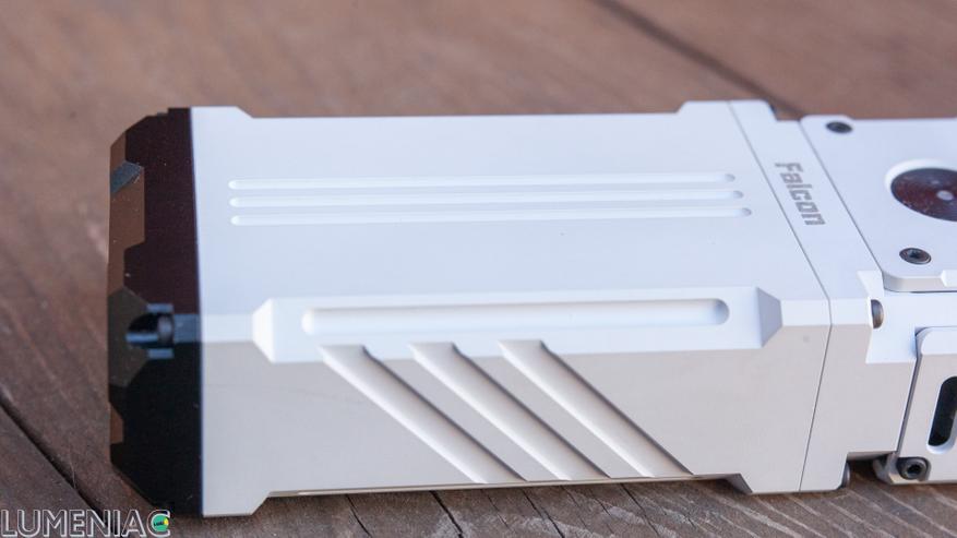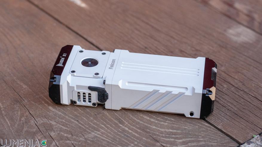 Wuben X1 Falcon приковывает взгляд не только необычной формой, но и обилием всяких прорезей и углублений. А в моём случае, еще и сочетанием белого корпуса с черными безелем и хвостокрышкой. Я нахожу этот фонарик исключительно приятным на вид.
