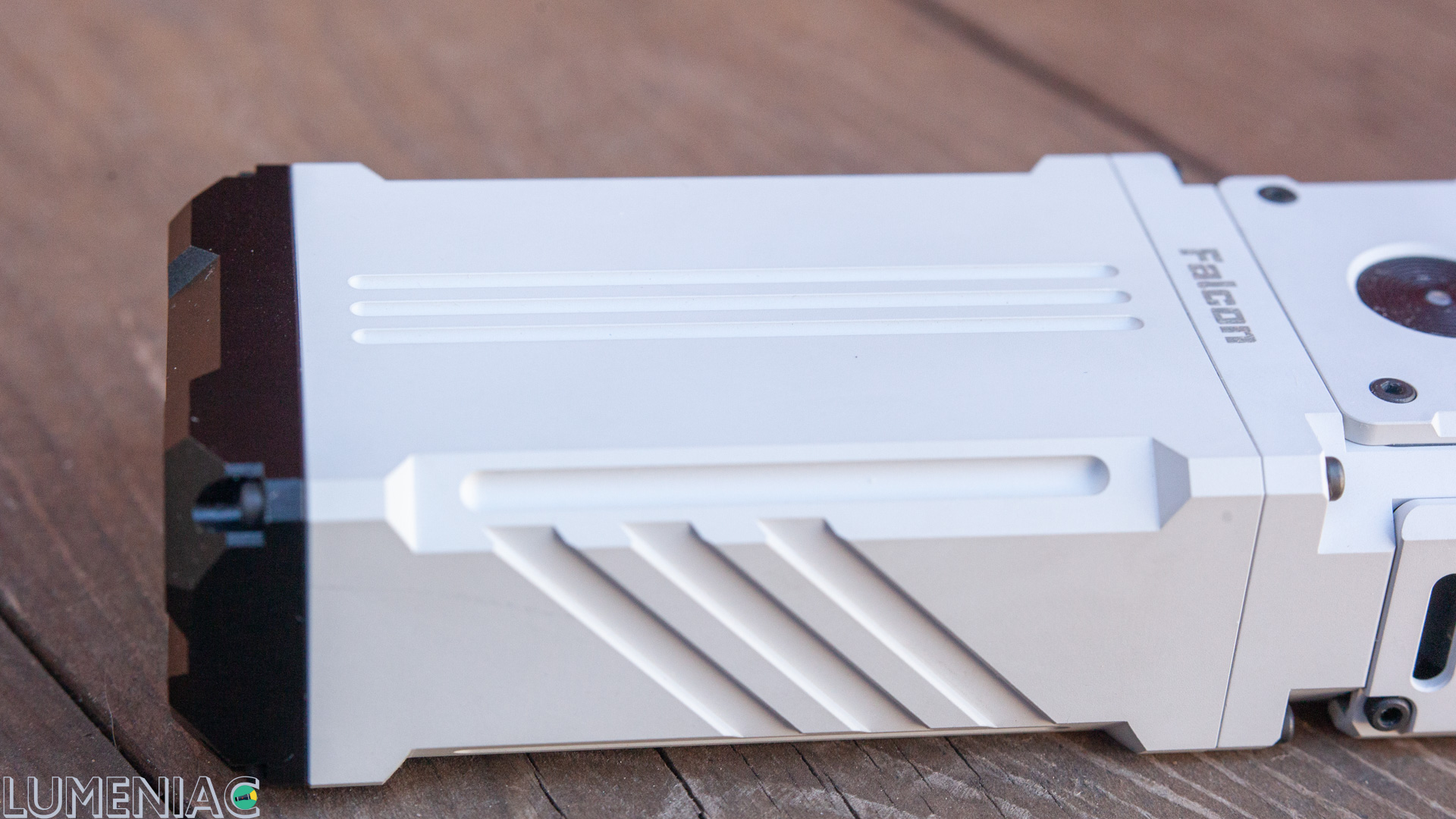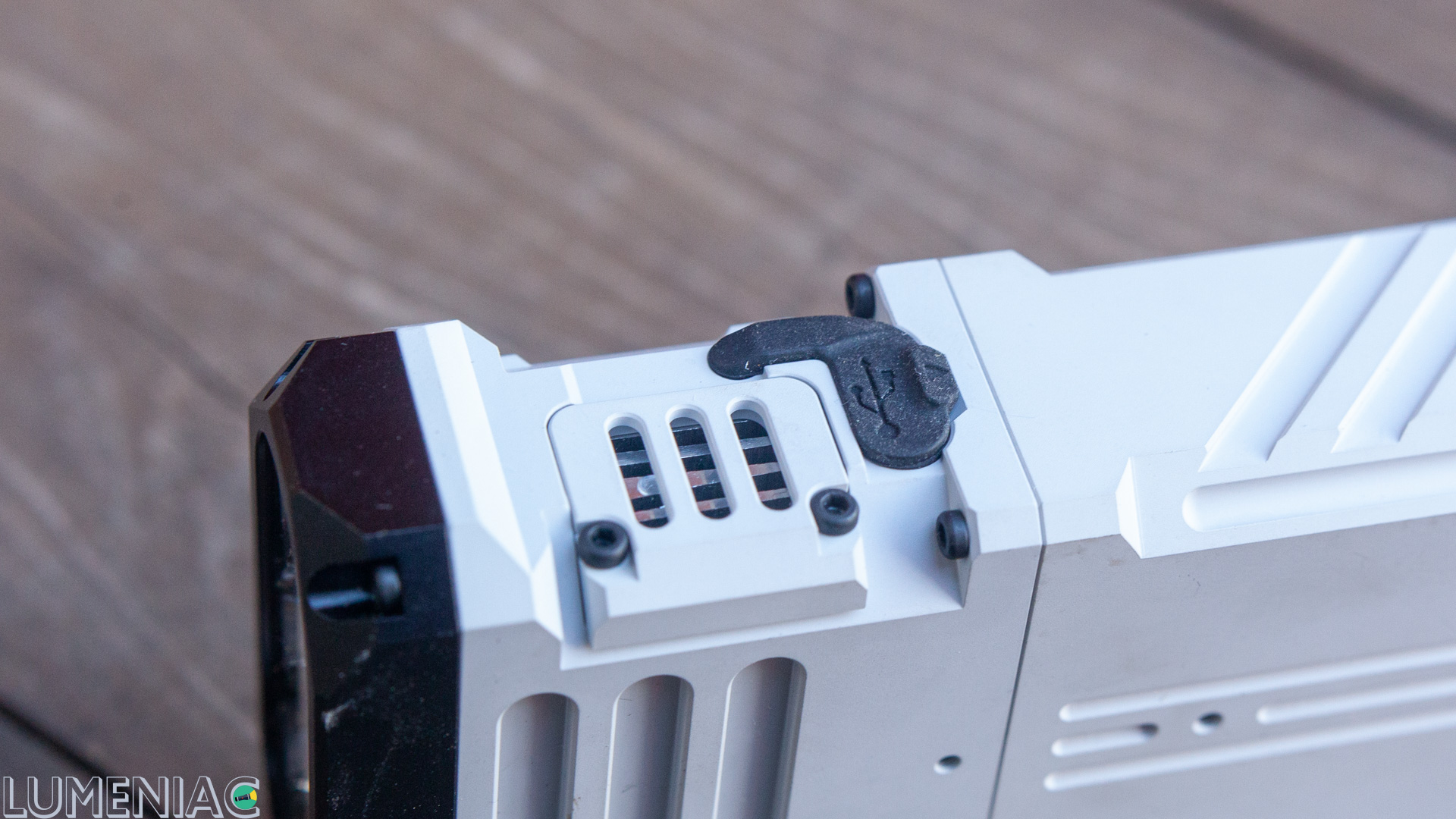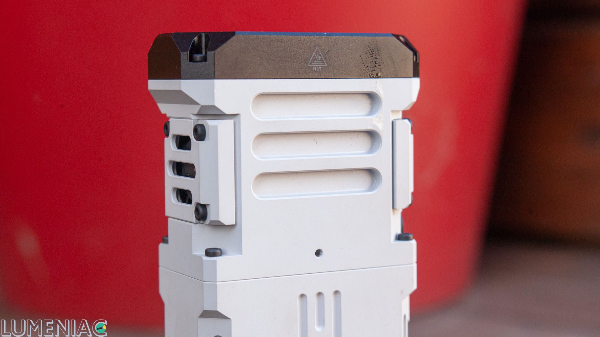 Wuben X1 Falcon приковывает взгляд не только необычной формой, но и обилием всяких прорезей и углублений. А в моём случае, еще и сочетанием белого корпуса с черными безелем и хвостокрышкой. Я нахожу этот фонарик исключительно приятным на вид.