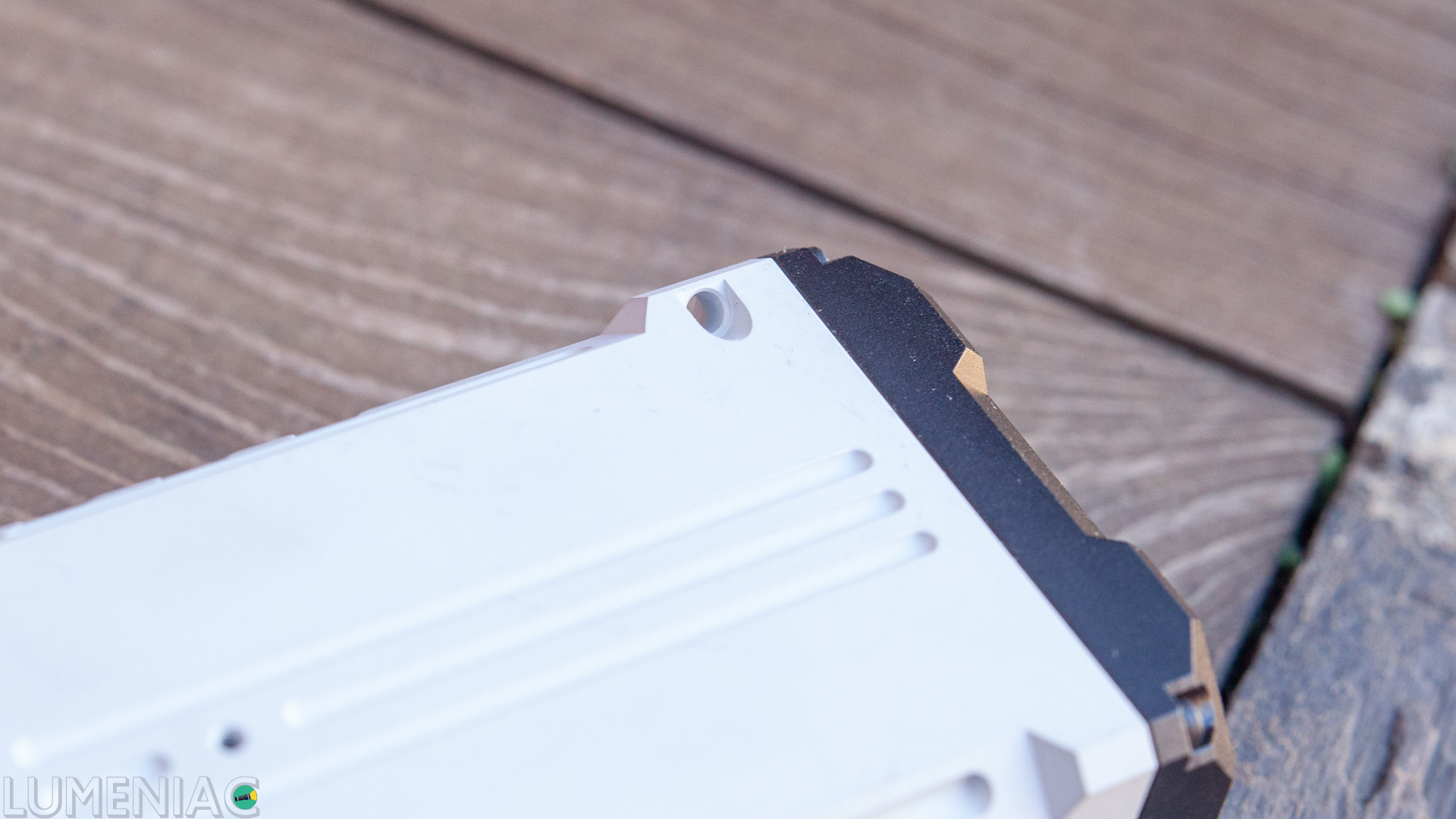 С противоположной от кнопки стороны находятся три глубоких выемки, которые формируют 2 ребра охлаждения. Я вижу в этом скорее пользу для дизайна и уменьшения веса, нежели для охлаждения.