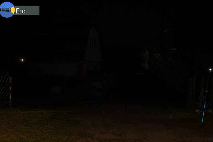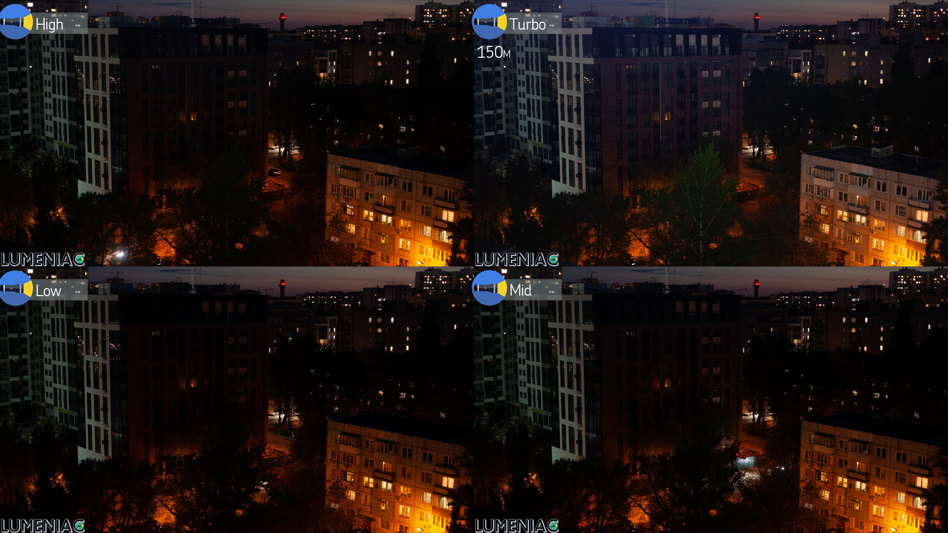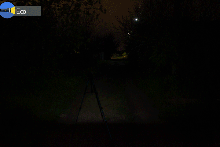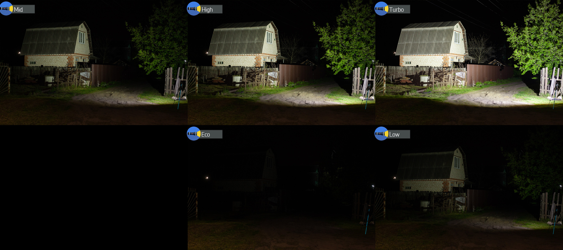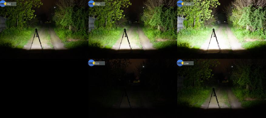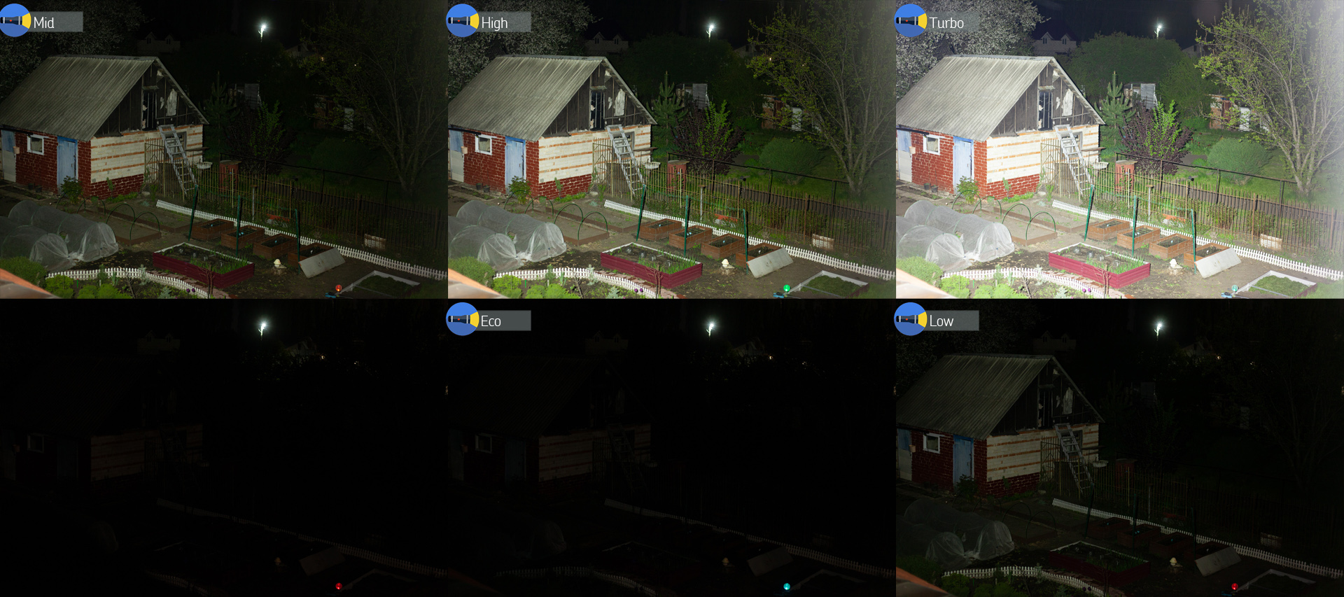 Это чистой воды заливной свет, не ищите тут какой-то серьёзной дальнобойности для постоянной работы. В турбо, впрочем, вы сможете осветить изрядный кусок территории и вдаль и вширь. Но только в Turbo, я не думаю что от High будет какой-то прок на дистанциях дальше порядка 50-75м.