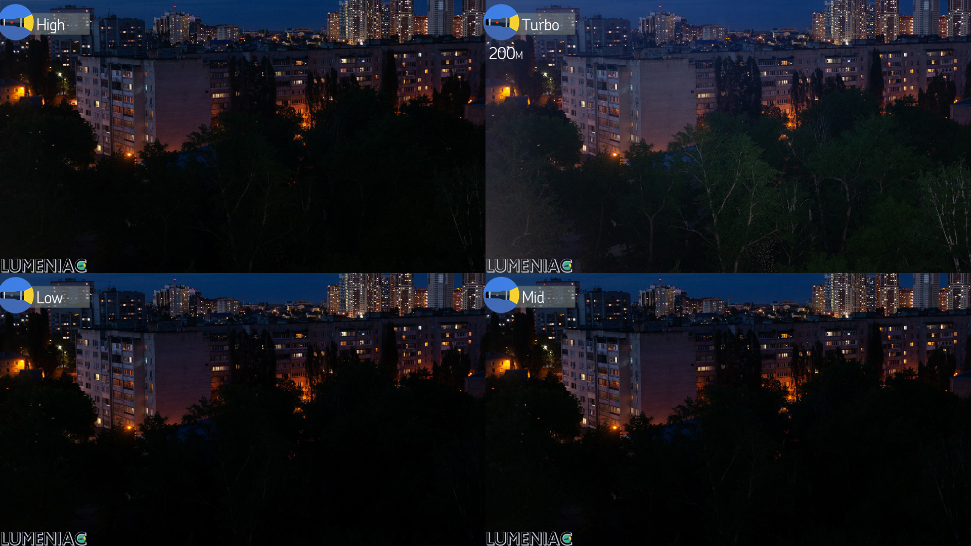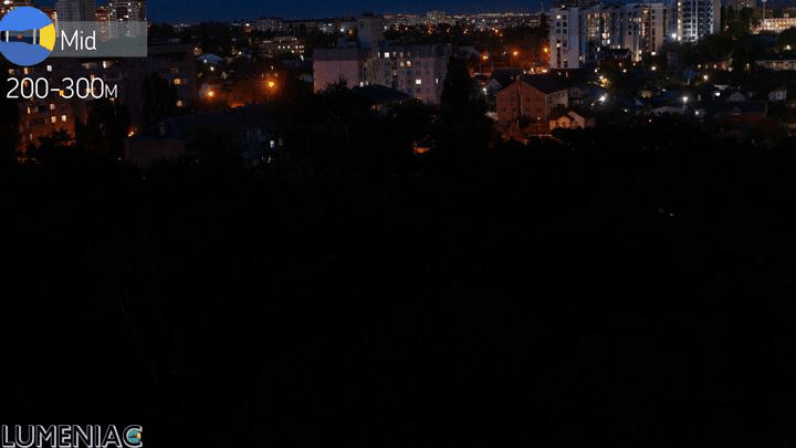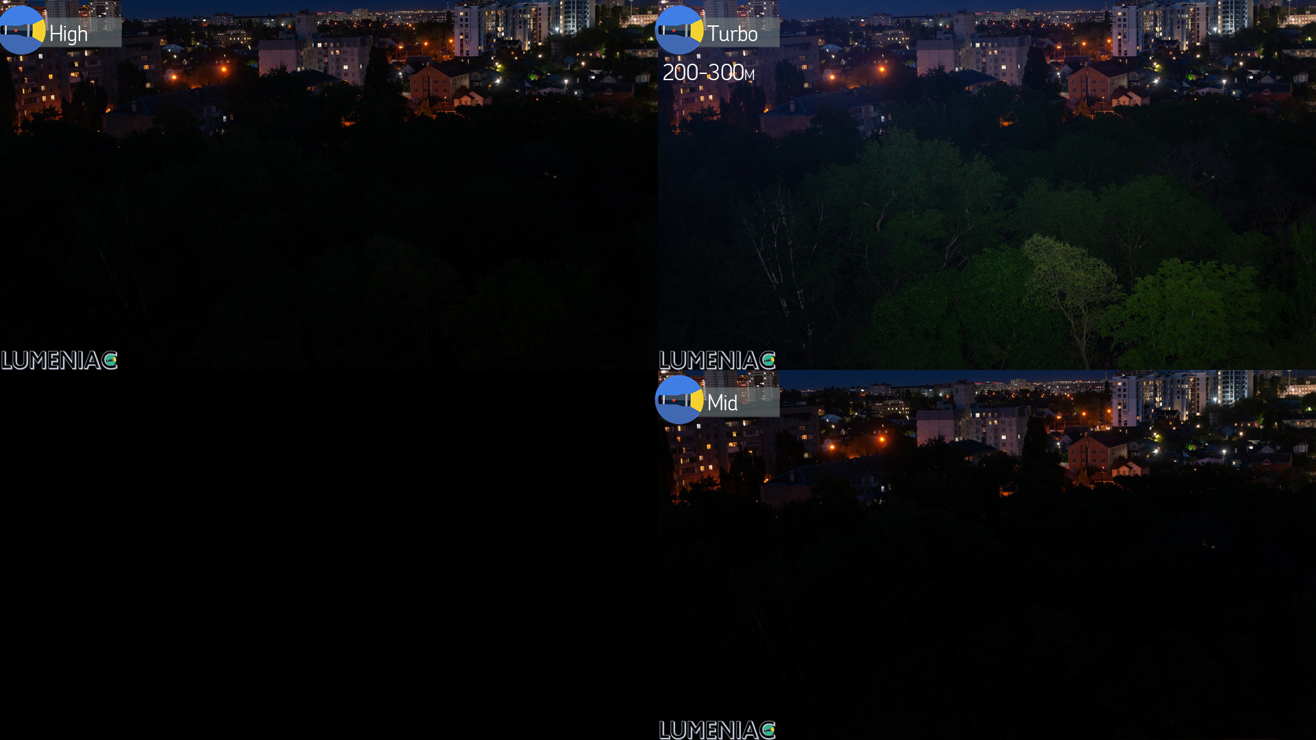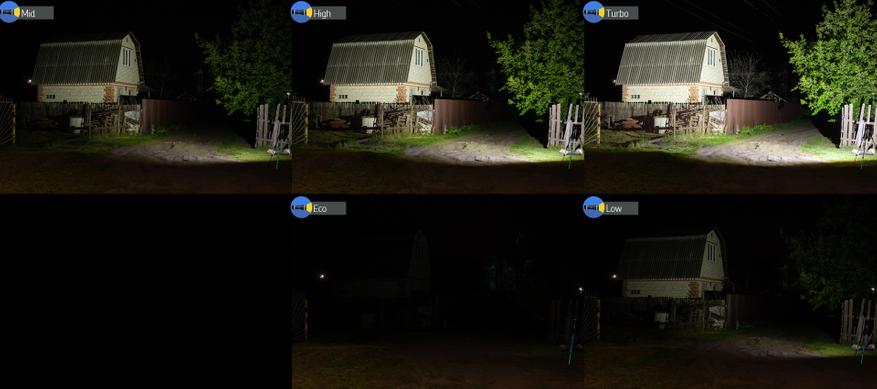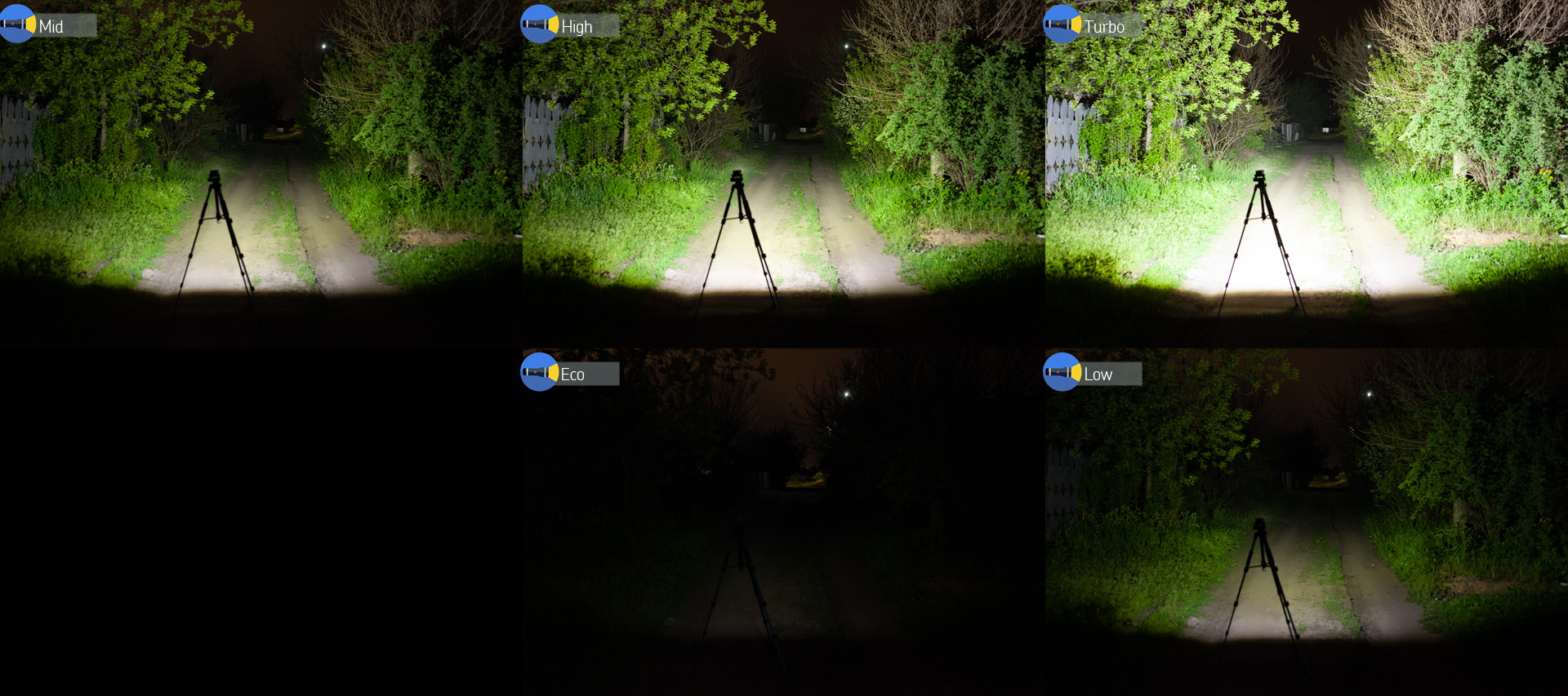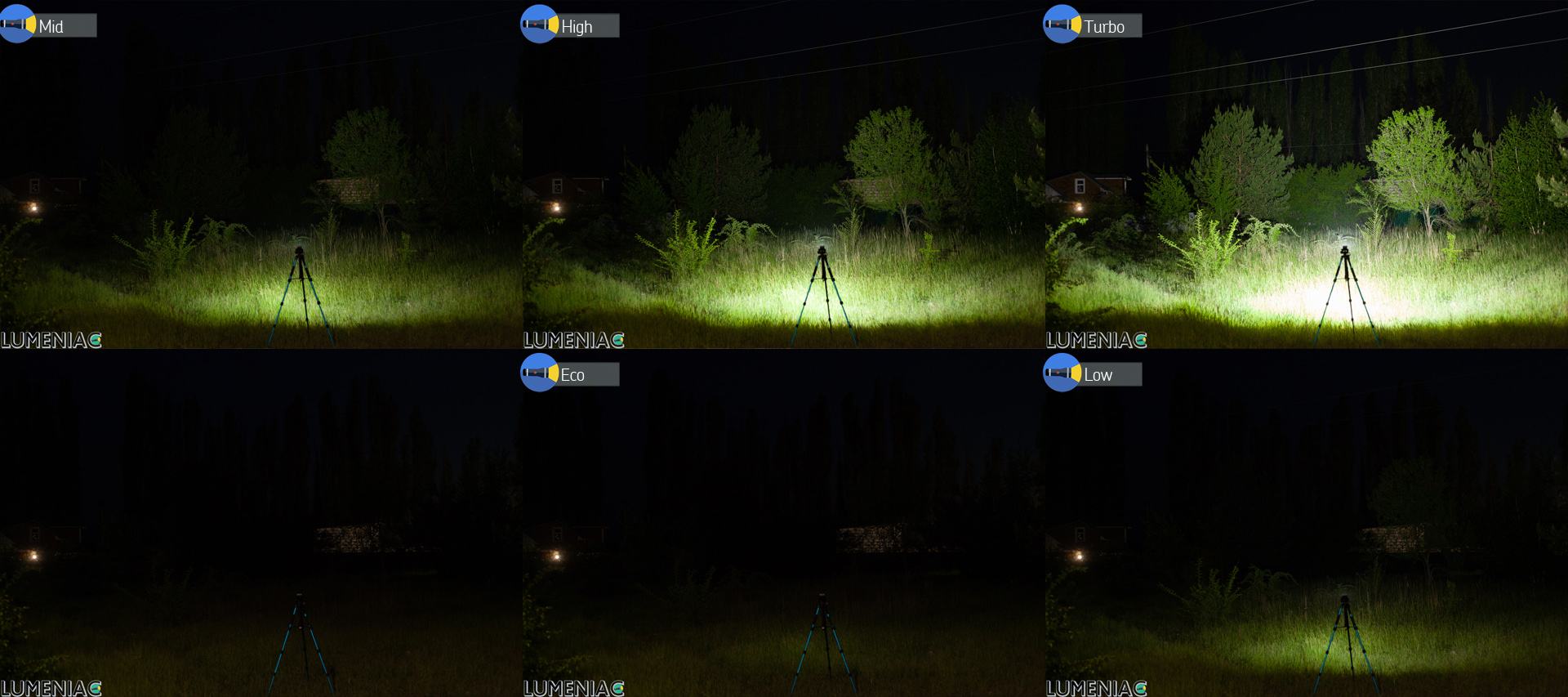 Это чистой воды заливной свет, не ищите тут какой-то серьёзной дальнобойности для постоянной работы. В турбо, впрочем, вы сможете осветить изрядный кусок территории и вдаль и вширь. Но только в Turbo, я не думаю что от High будет какой-то прок на дистанциях дальше порядка 50-75м.