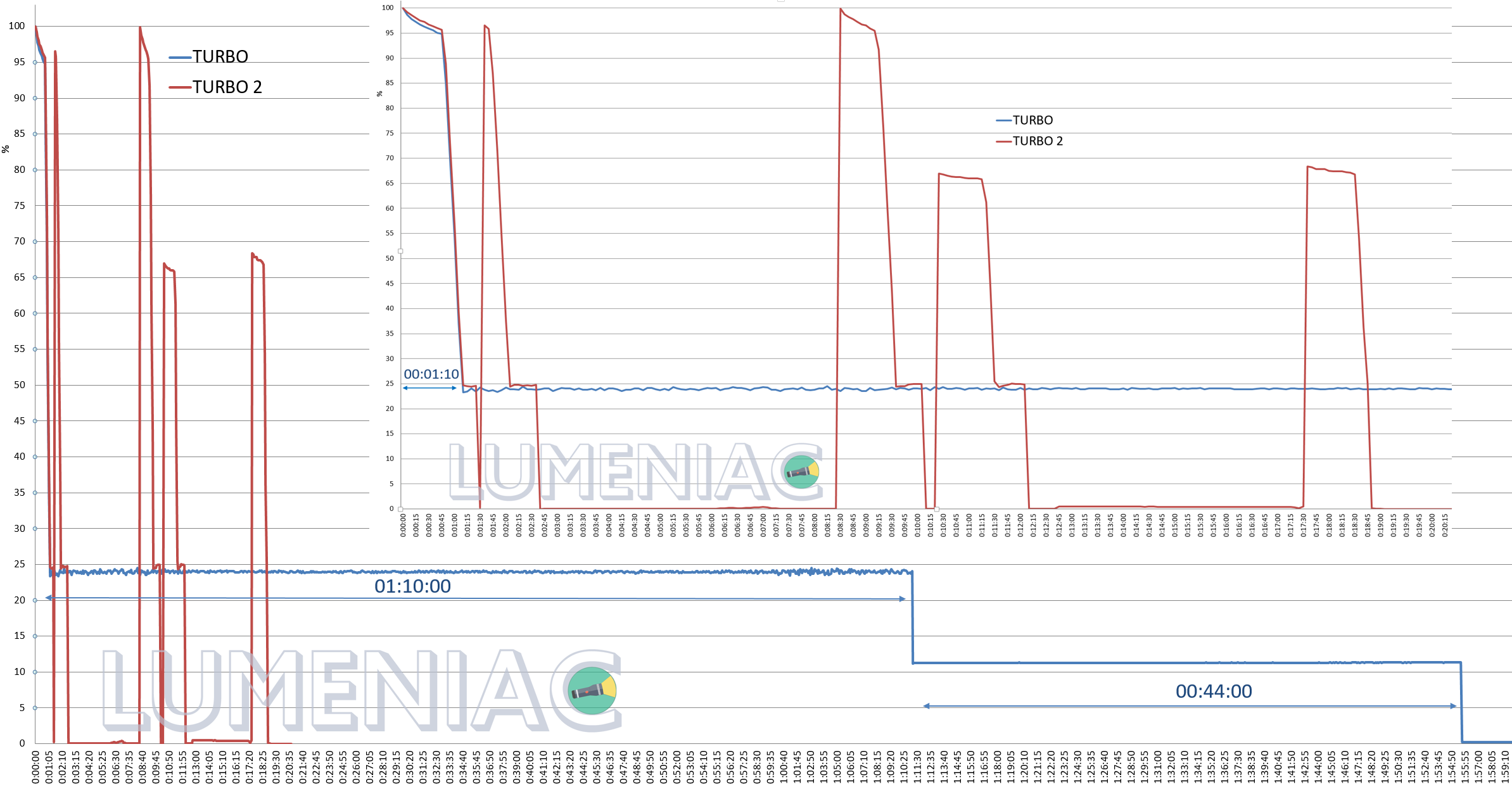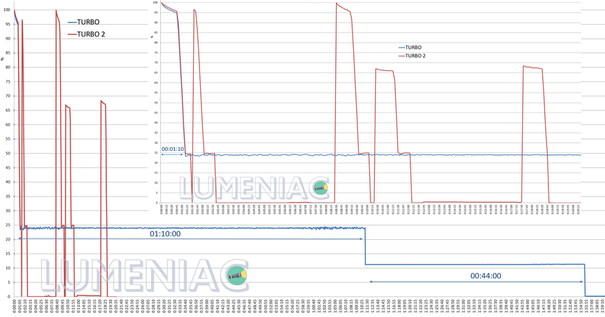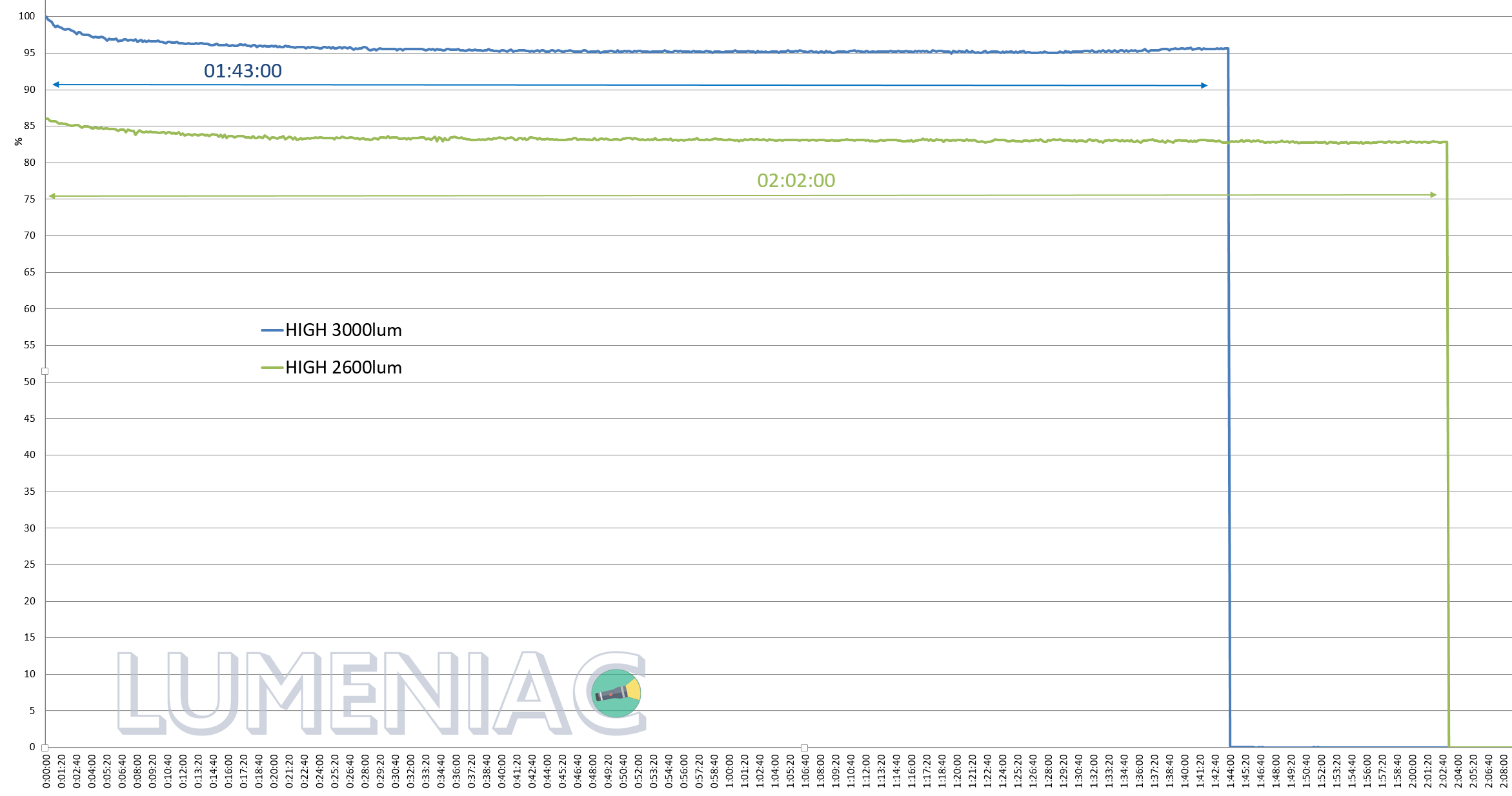 Заявленное турбо 12000люм. По сторонним замерам тут ~9500люм. Разница есть, но глаз её не увидит. А вот в плане нагрева корпуса несколько меньшая яркость даже лучше.
