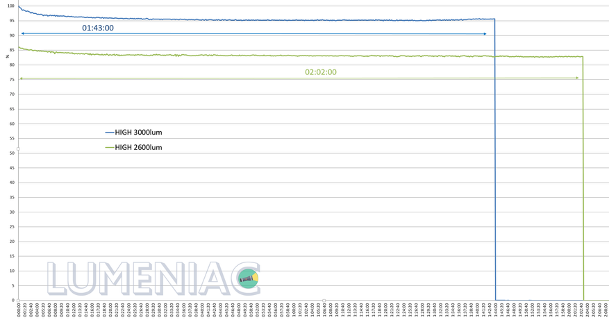Впрочем, после нескольких перезапусков, аккумуляторы, похоже, уже не тянут и вам остается что-то порядка 5000люм.