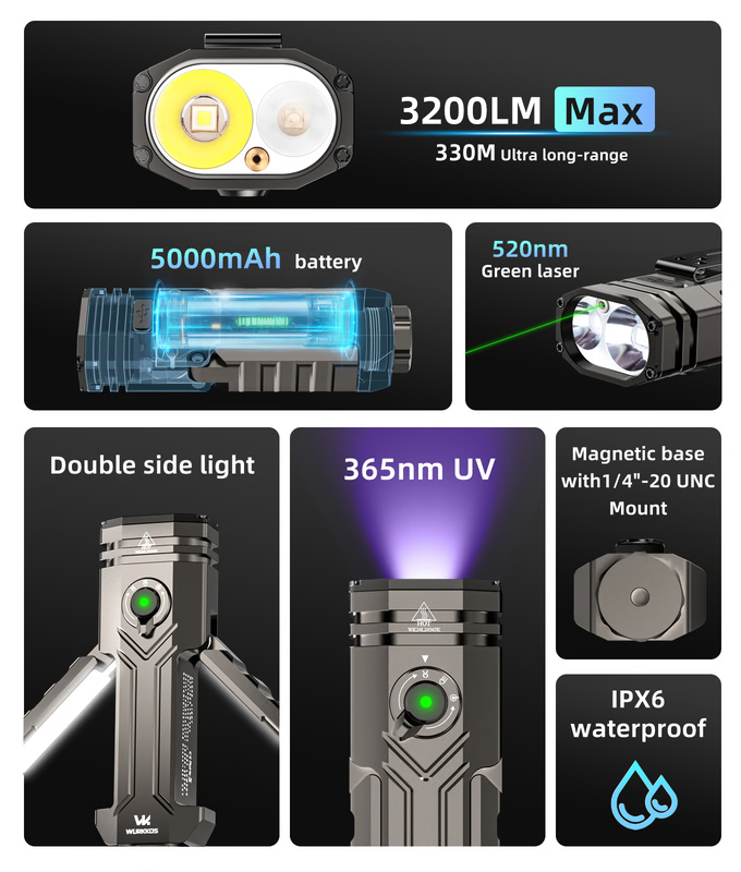 Осветит «крыльями» вблизи и пробьёт вдаль лазером. Фонарик-комбайн Wurkkos HD02 собирает кассу на Kickstarter