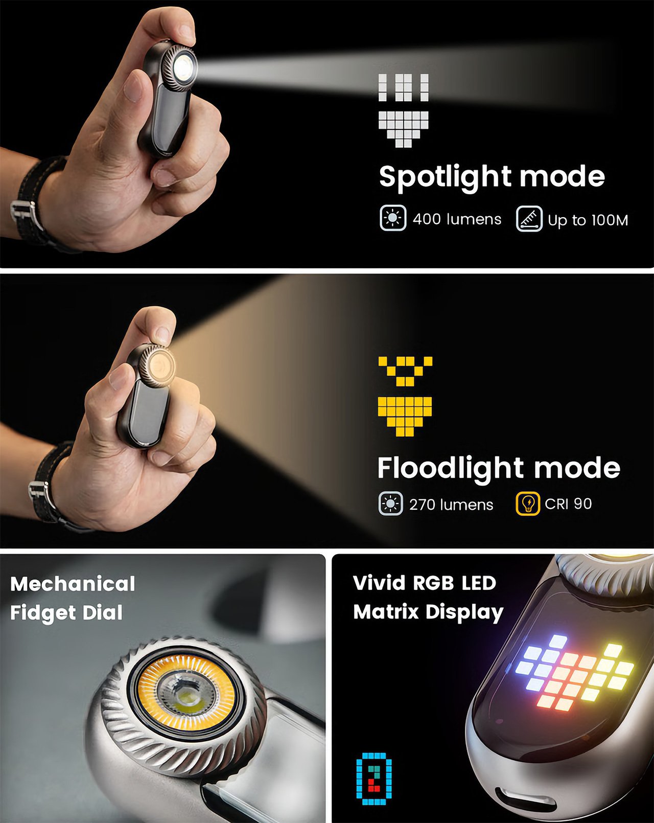 LOOP GEAR представила компактный фонарик с пиксельным дисплеем и встроенными мини-играми