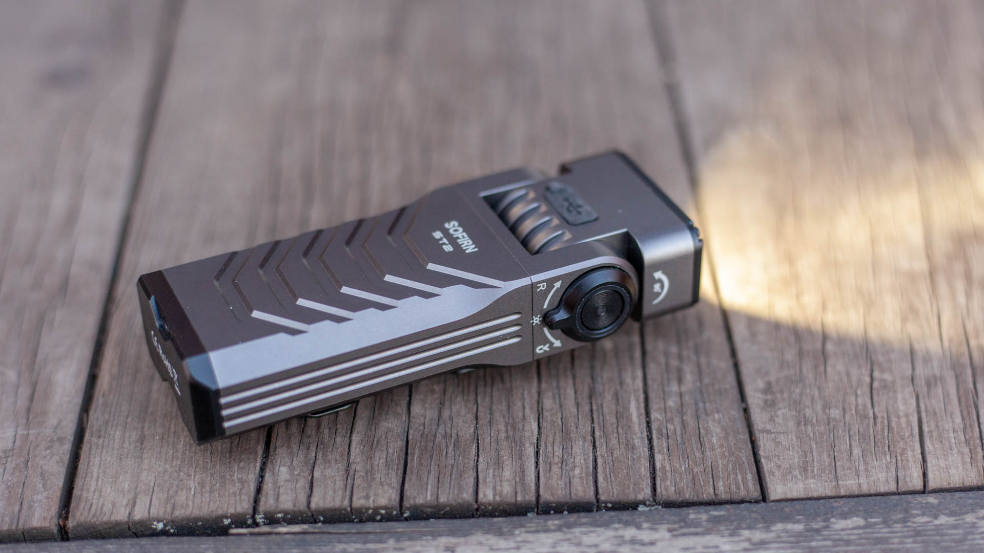 Фонарик управляется той же связкой кольца механического поворотного тумблера и кнопки в его центре, что и «крылатый» Wurkkos HD02 (см обзор) или его развитие — новый и прикольнейший Wurkkos HD05 (обзор), что и неудивительно, коли Wurkkos производят свои фонарики на мощностях Sofirn, это весьма тесно связанные бренды. Если вы только планируете разжиться ST2, то учтите что из коробки он идёт заблокированным и вам нужно сделать 4 щелчка.