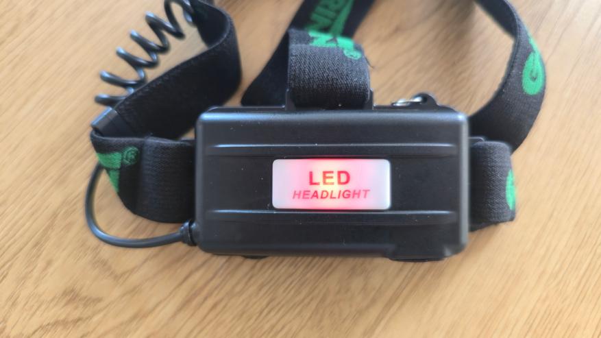 Аккумуляторный блок выполнен из пластика, имеет прямоугольную форму и закрывается резиновой крышкой. На его задней стенке выделена панель с маркировкой LED Headlight, под которой размещен красный индикатор, используемый в качестве заднего сигнала. В нижней части, под силиконовой заглушкой, расположен разъем для подключения зарядного устройства, а провод, идущий к переднему модулю, уложен вдоль оголовья и зафиксирован в нескольких точках.