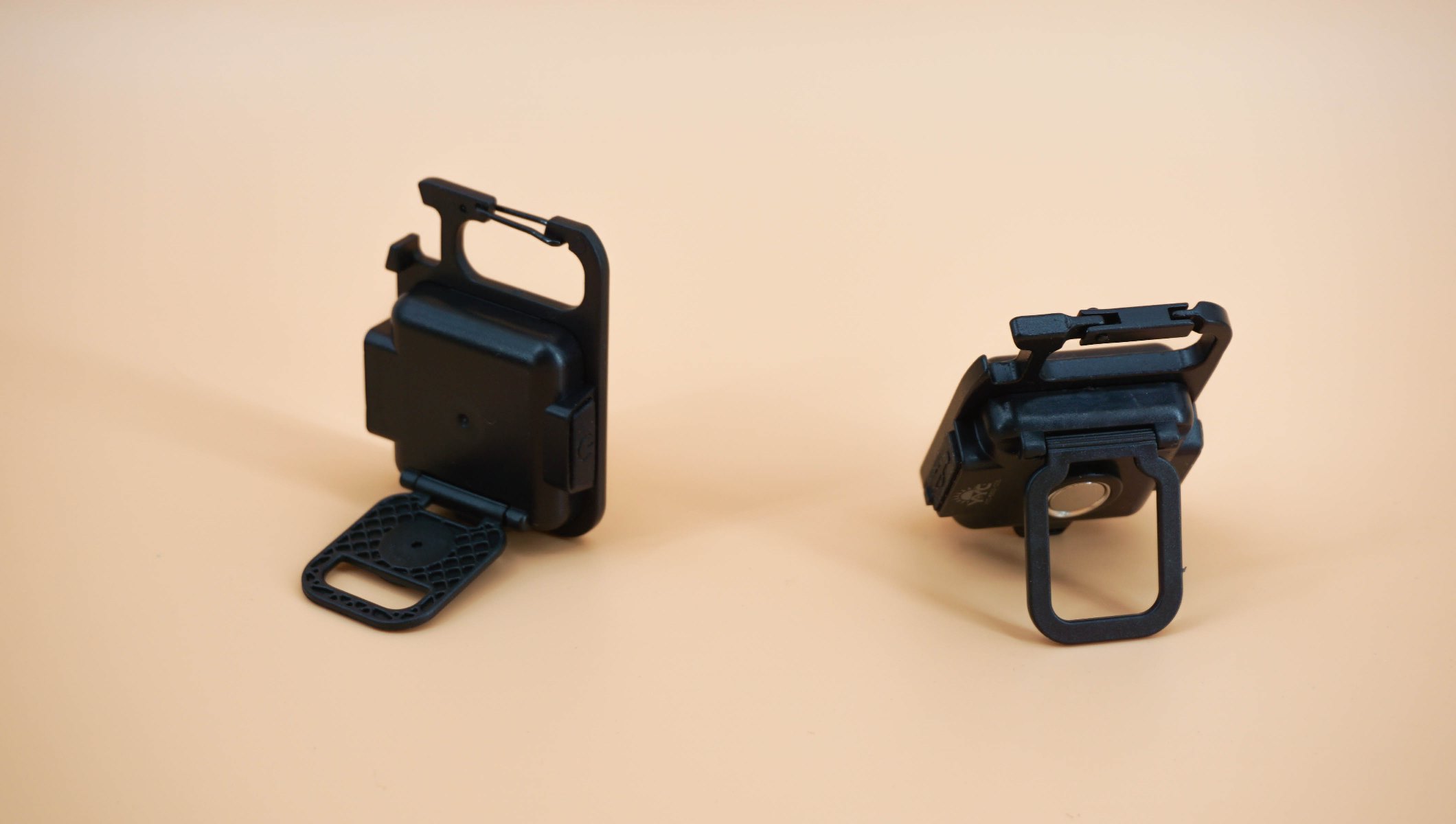 Второй способ крепления — это карабин. Можно использовать не только для подвешивания на связку ключей, но и в качестве фиксатора на подвес или петлю. Третий способ установки — на откидной подставке. Подставка хлипкая, тонкая, но свою функцию исполняет.