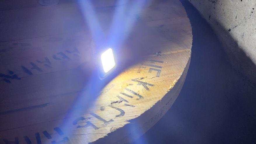 Практически весь размер корпуса занимает квадратная светодиодная COB панель. Она дает яркий рассеянный свет, равномерный, с холодным оттенком. При длительном включении греется — лучше брать фонарик с алюминиевой передней панелью, как на фотографиях.