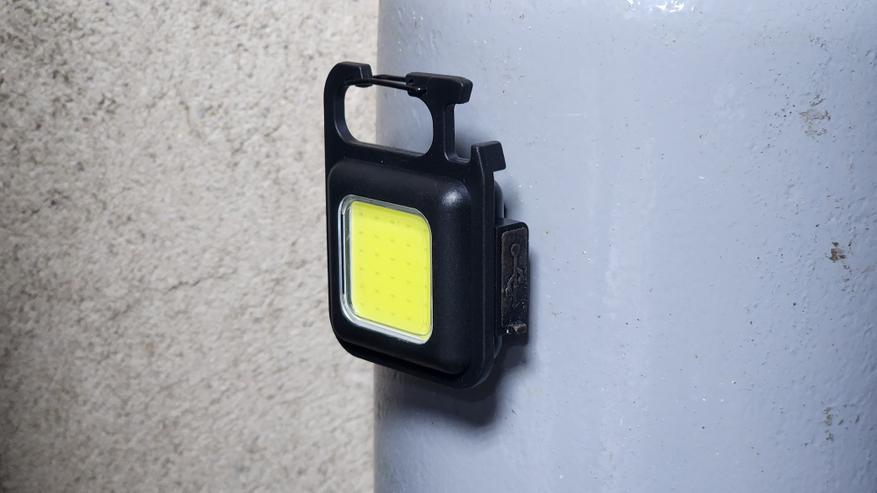 Одну штуку повесил на магните на щитке электроящика, как захожу в помещение — достаточно вытянуть руку для его включения, так как часто отключают электроэнергию и я остаюсь без света. Второй фонарь под рукой, обычно на связке ключей в кармане. Светит не особо ярко, но достаточно для того, чтобы что-то сделать или что-то найти без основного освещения.
