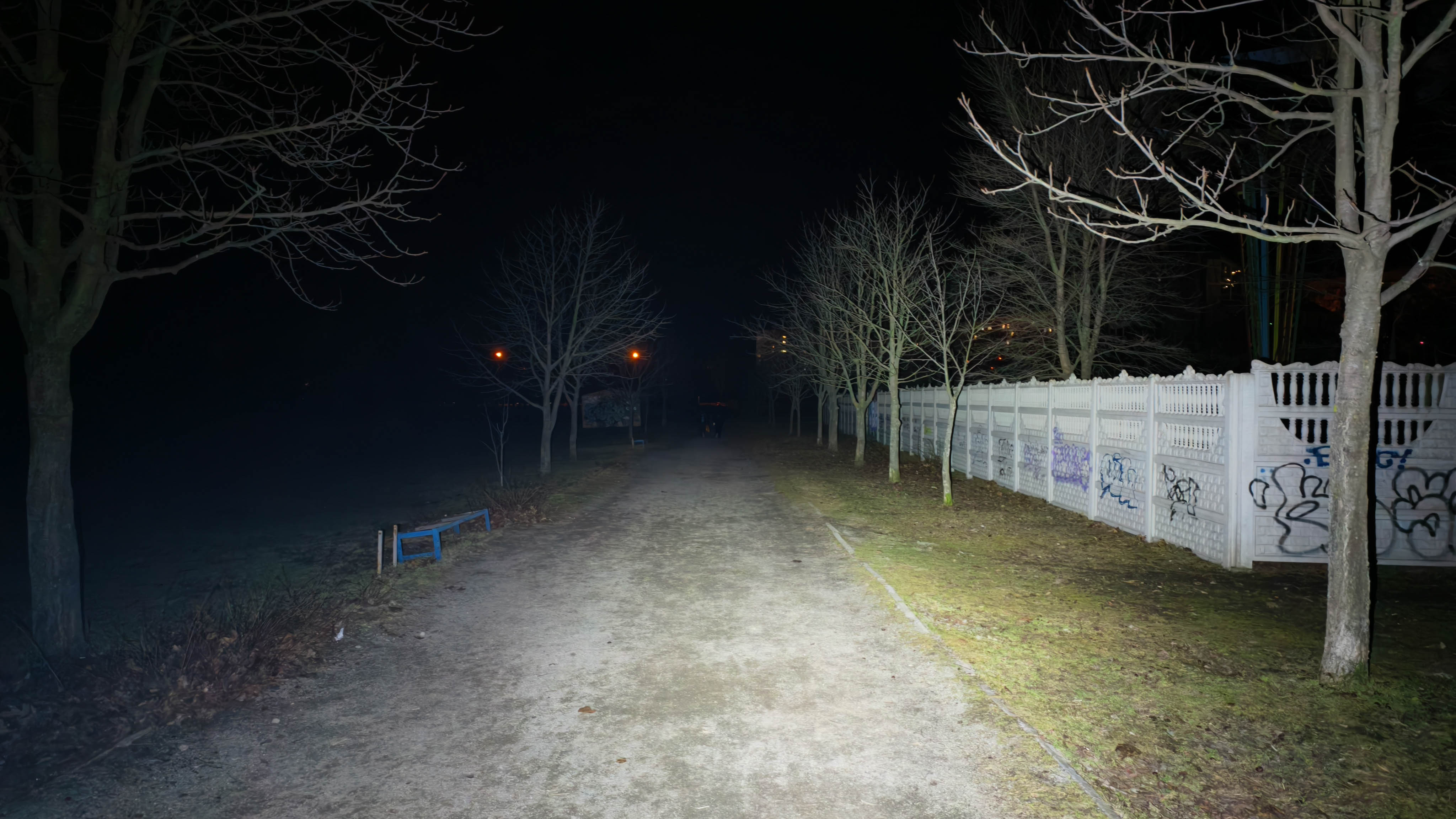 На высокой яркости это уже мощный свет, который бьет на приличное расстояние и отлично заливает светом ближайшие объекты. Этот режим можно использовать, чтобы подсвечивать дорогу на более значительных расстояниях.