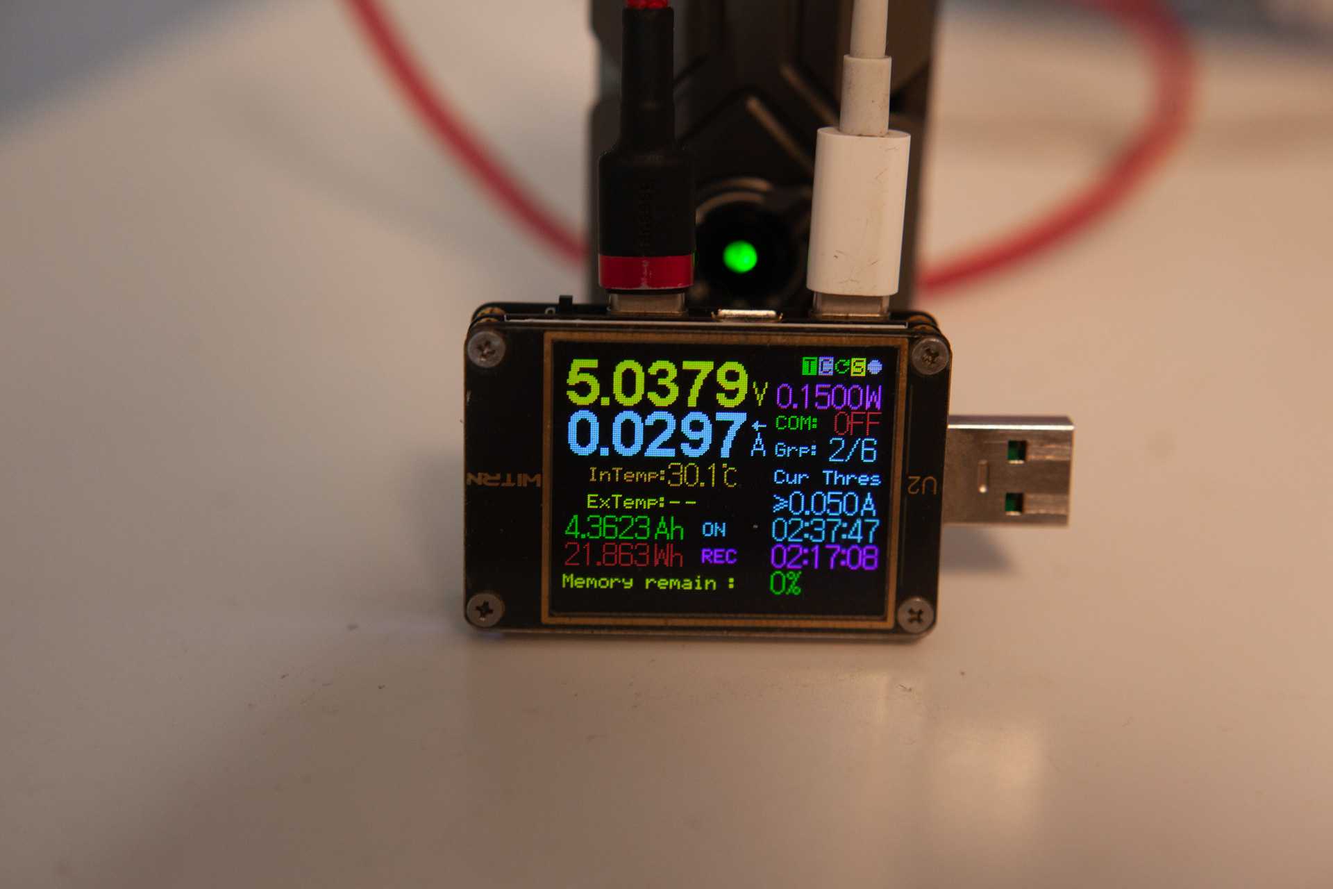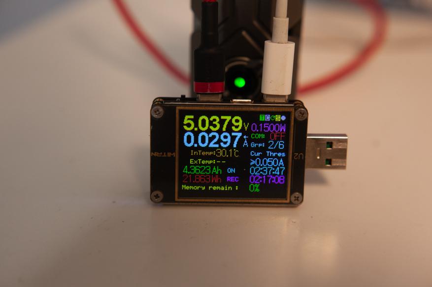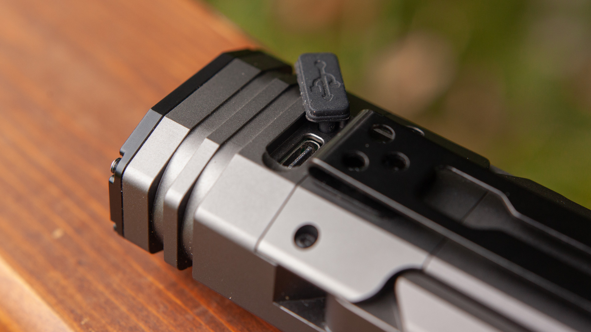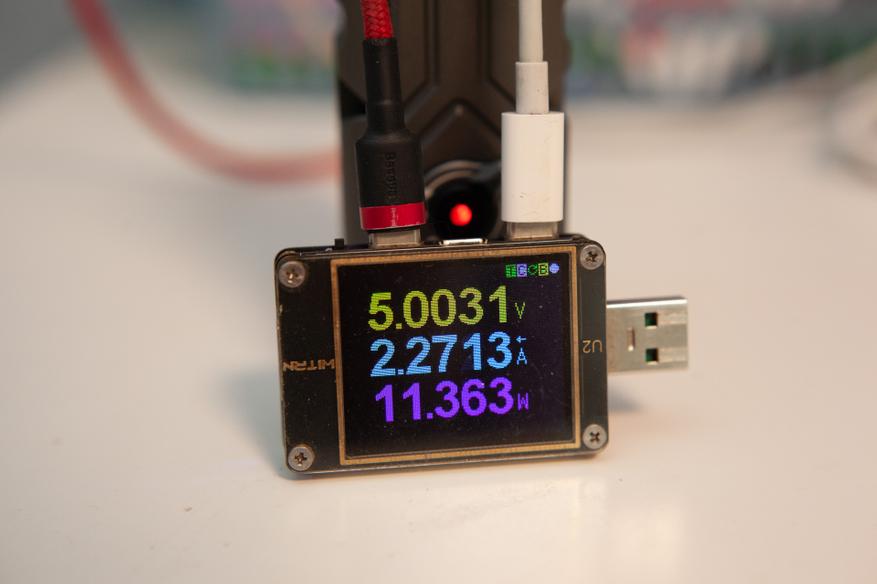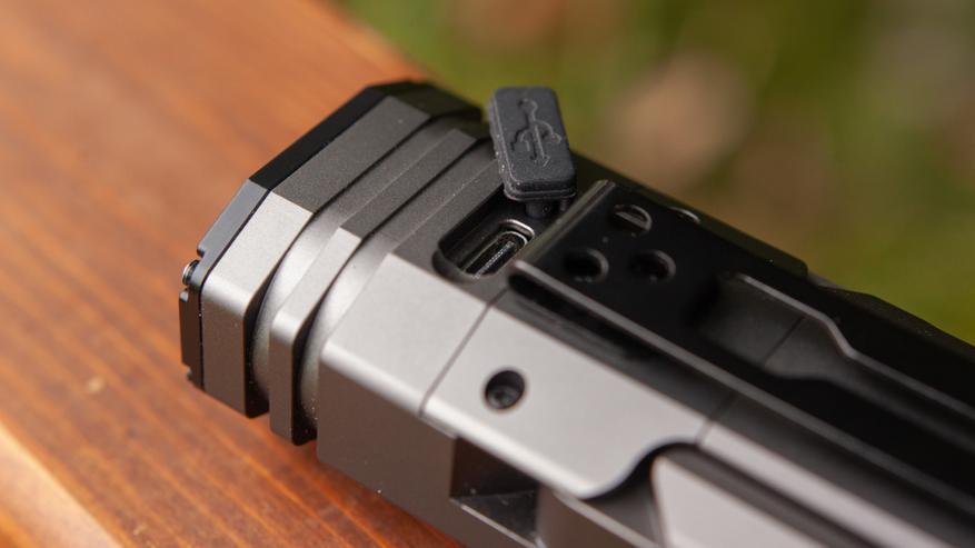 Как обычно, с противоположной стороны от кнопки находится разъём зарядки. Он глубокий, закрыт толстой заглушкой. Максимальная увиденная мной мощность — 11.3Вт, комплектный 21700 аккумулятор полностью заряжается за ~2ч17мин.