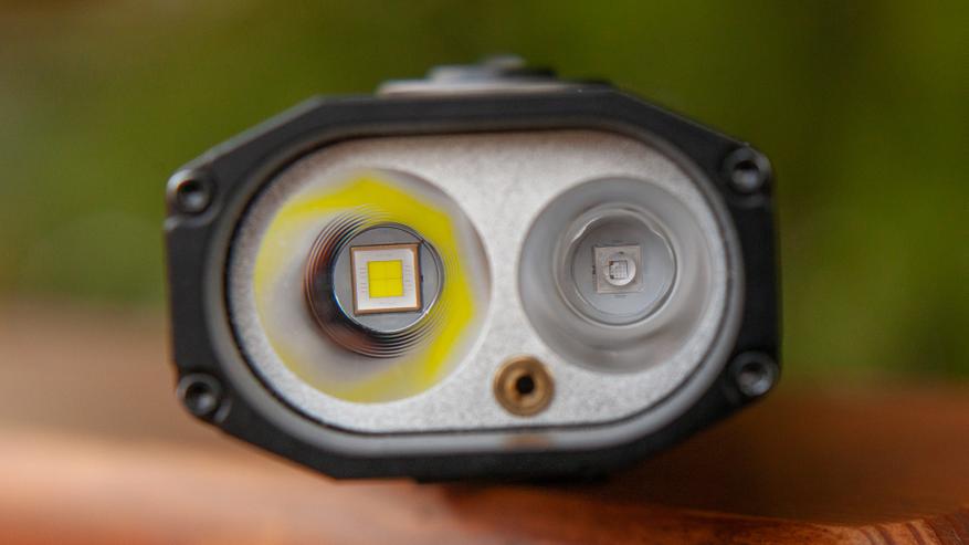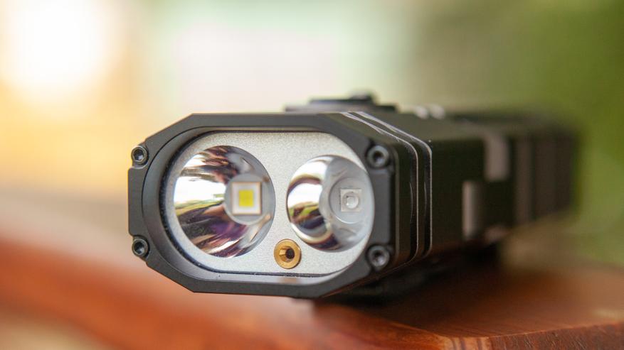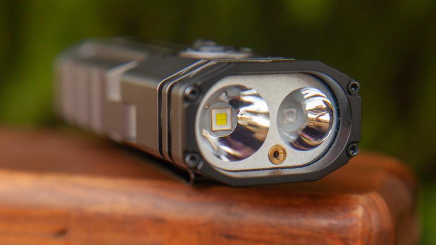 Ну что, пришло время увидеть основную фишку этого фонарика. Попытки встроить боковой свет в полноразмерный (в наключниках такое давно не редкость) фонарик ведутся давно. Что тут бывает, если навскидку? Выпуклая «бульбочка» или просто полоска COB-светодиодов. Последняя, к слову часто стоит во множестве беспородных ультрабюджетных фонариков. Ну еще когда-то давно Fenix, помнится, ставили светодиод даже в хвост фонарика!