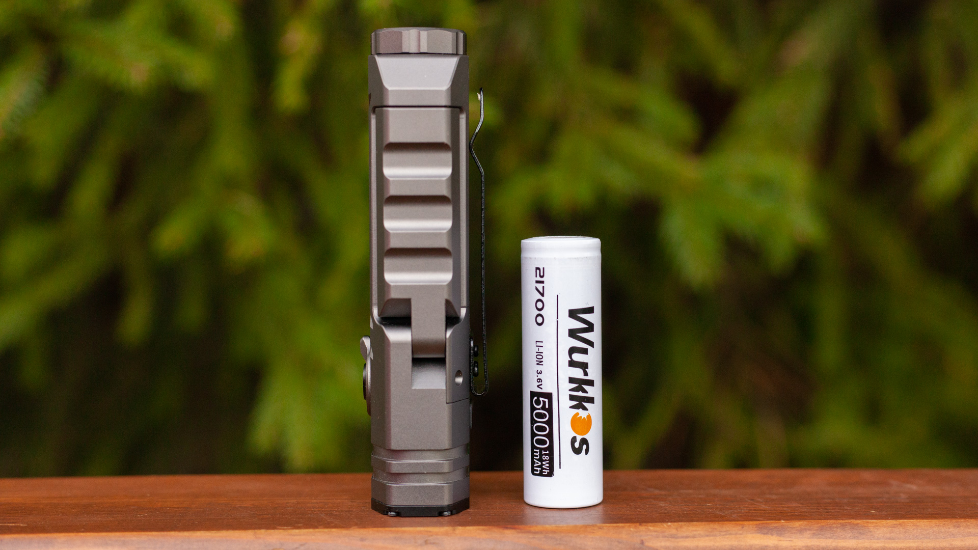 Обзор Wurkkos HD02 предлагаю начать с оценки его размеров, для чего эталоном послужит как раз-таки комплектный 21700 аккумулятор ёмкостью в 5000mah. Замерять ёмкость не буду, на моей памяти не было ни одного случая, чтобы разница в ёмкости превысила какой-то несущественный порог. В обе стороны, к слову.
