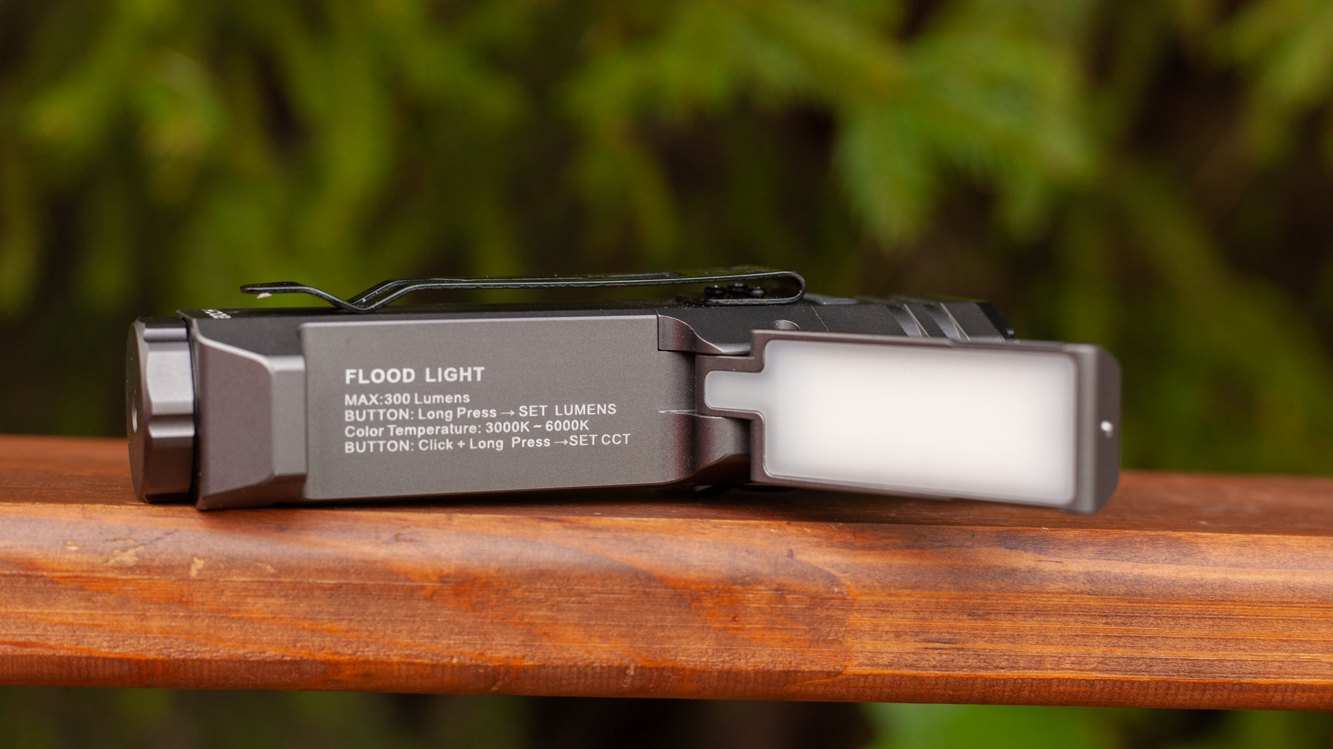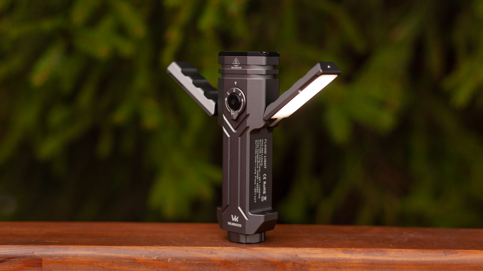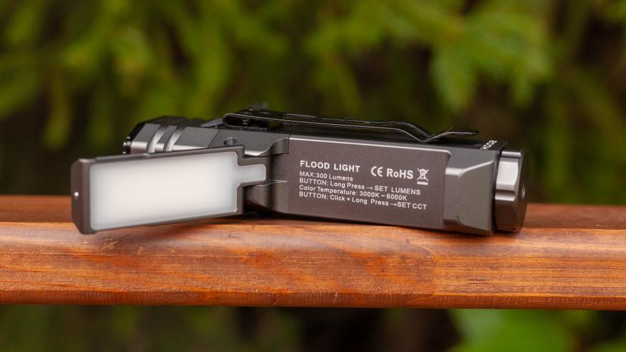Я тут упоминал Wurkkos TS27, вот в нём дополнительный кемпинговый свет реализован еще одним способом — светодиодным кольцом под головой. Исключительно яркий и долгоиграющий (аккум-то там на 15000mah!, посмотрите). Тут же решение существенно сложнее. Ни много ни мало, а два крыла со встроенными светодиодами!
