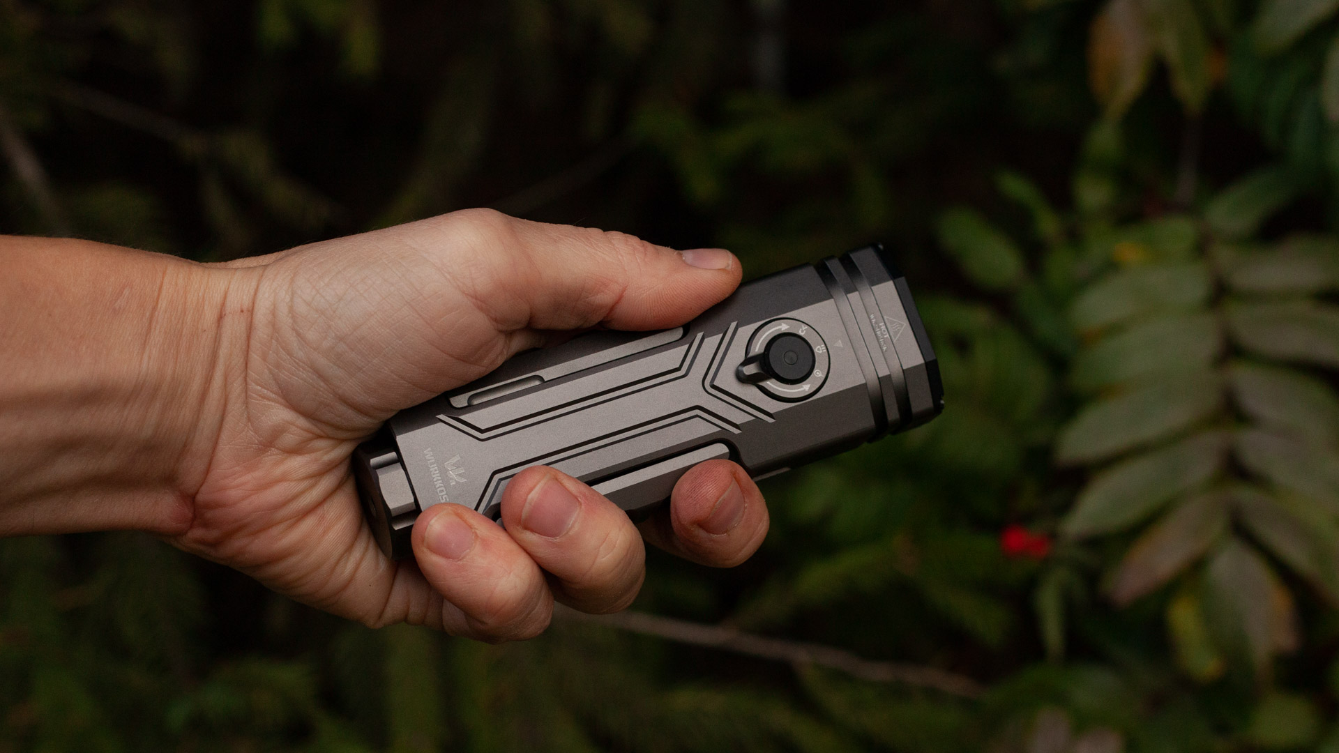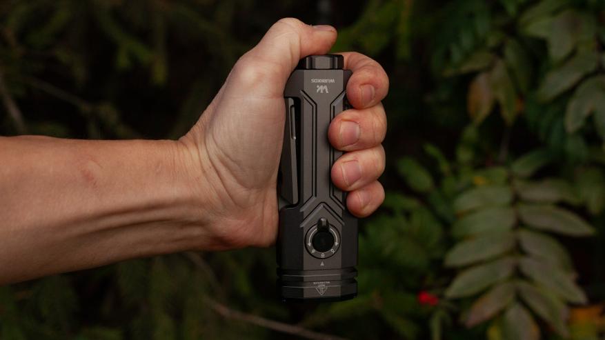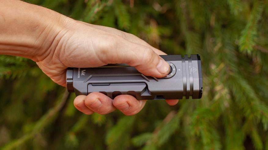Так что в руку Wurkkos HD03 ложится как влитой и хорошо держится в руке благодаря волнообразным выемкам с внешней стороны «крыльев». Хват удобный и надёжный. И, как сказал выше, палец сразу же находит кнопку.
