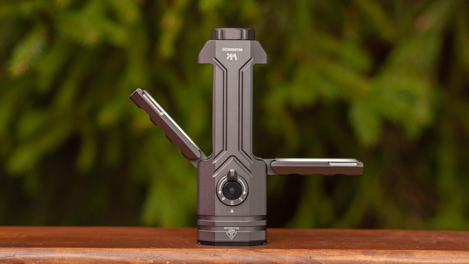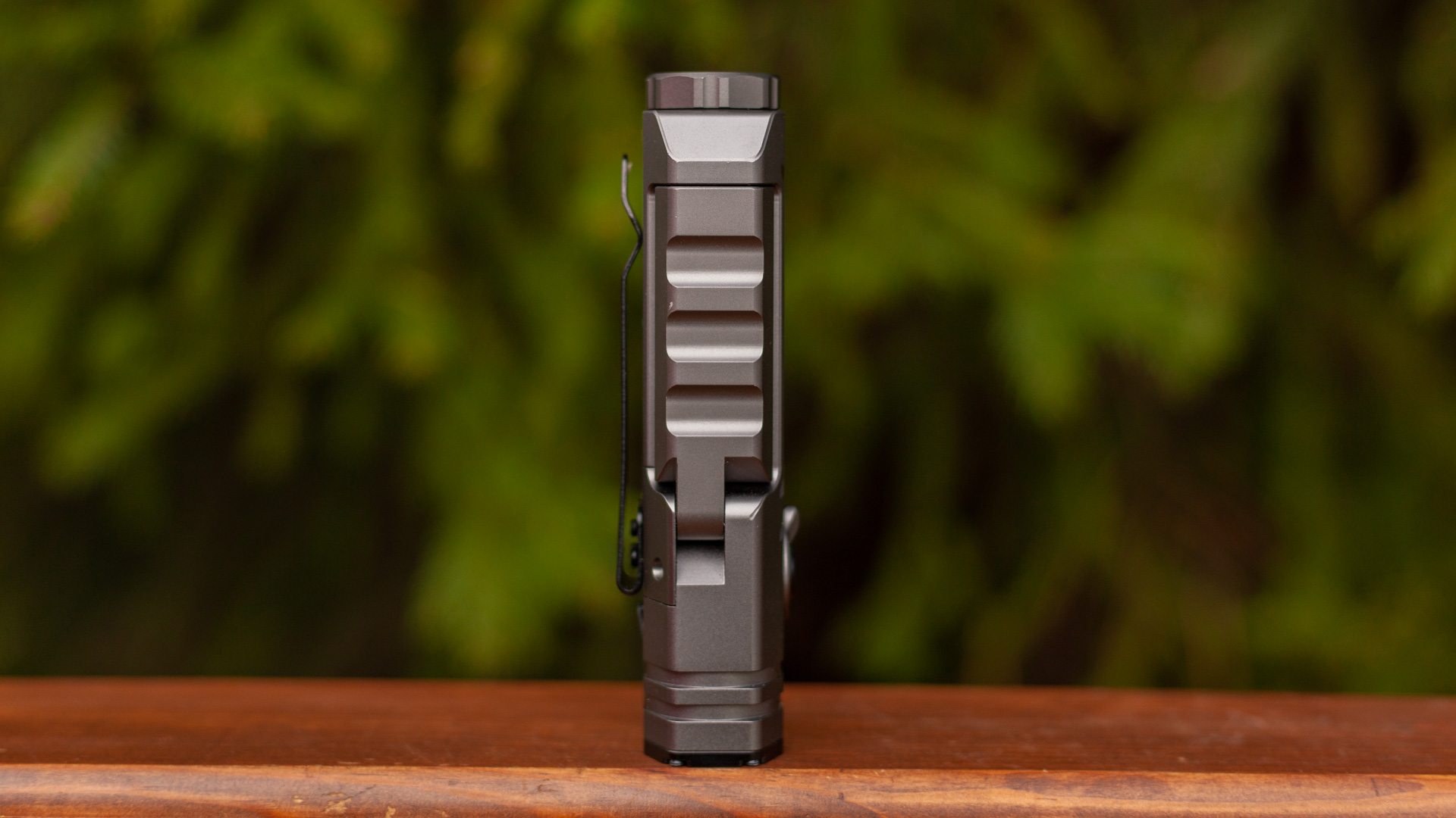 Для начала давайте рассмотрим его в походном положении со сложенными крыльями и перейдём к ним позже. На мой взгляд, решение отойти от классического чёрного анодирования тут совершенно уместно и Wurkkos угадали с цветом. Может быть какой-то иной цвет смотрелся бы еще лучше, но тот, что есть, мне, несомненно, по душе.